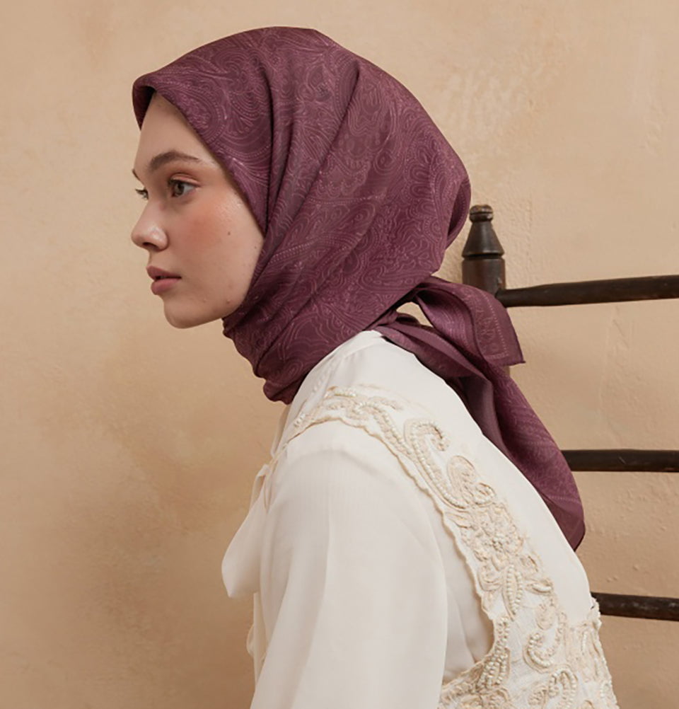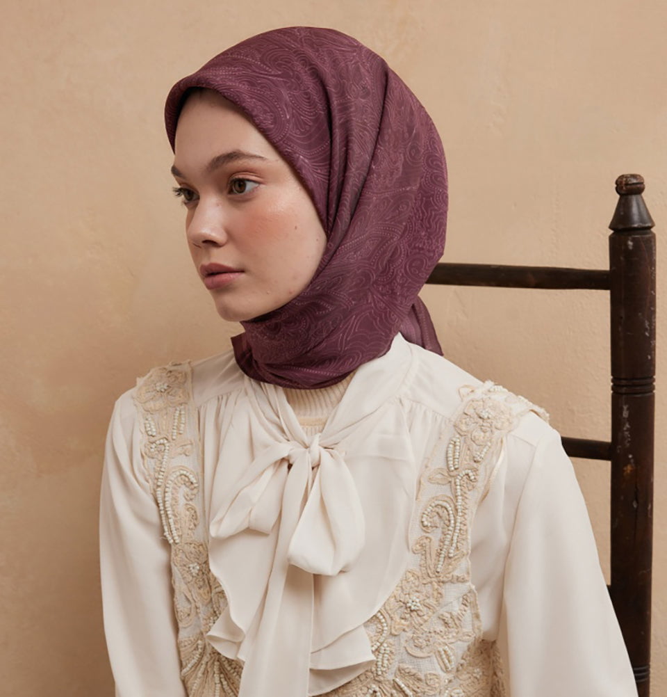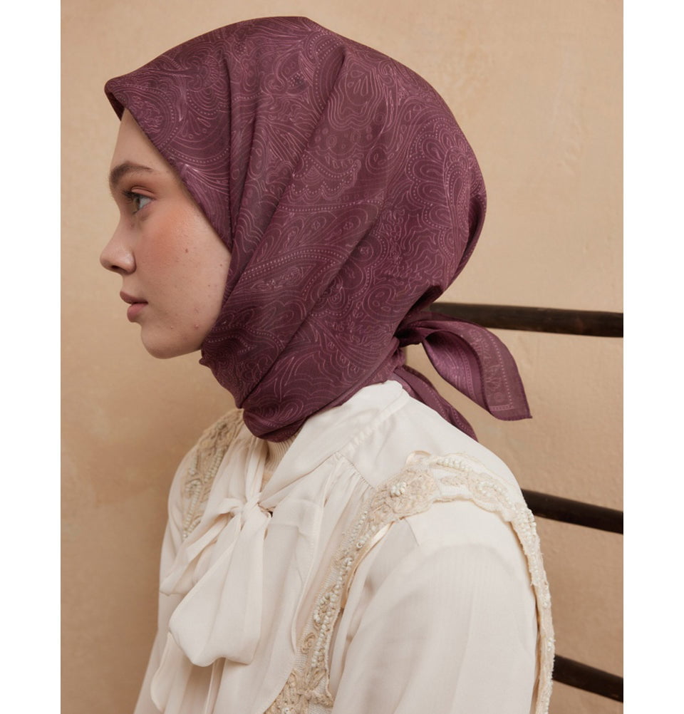 Modal Silk Blend Bohemian Breeze Reina Square Hijab - Mulberry