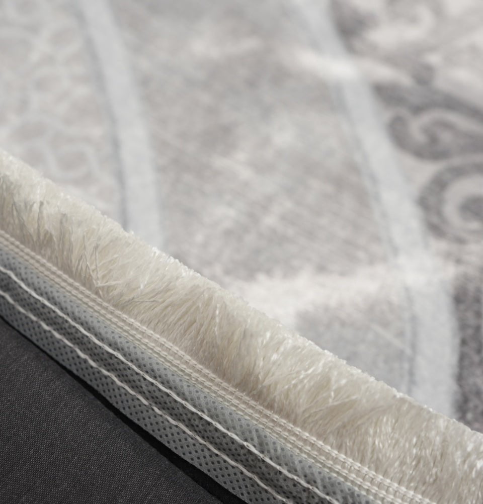 Foam Islamic Prayer Rug - Velvet Digital Print Mosaic Floral - Grey