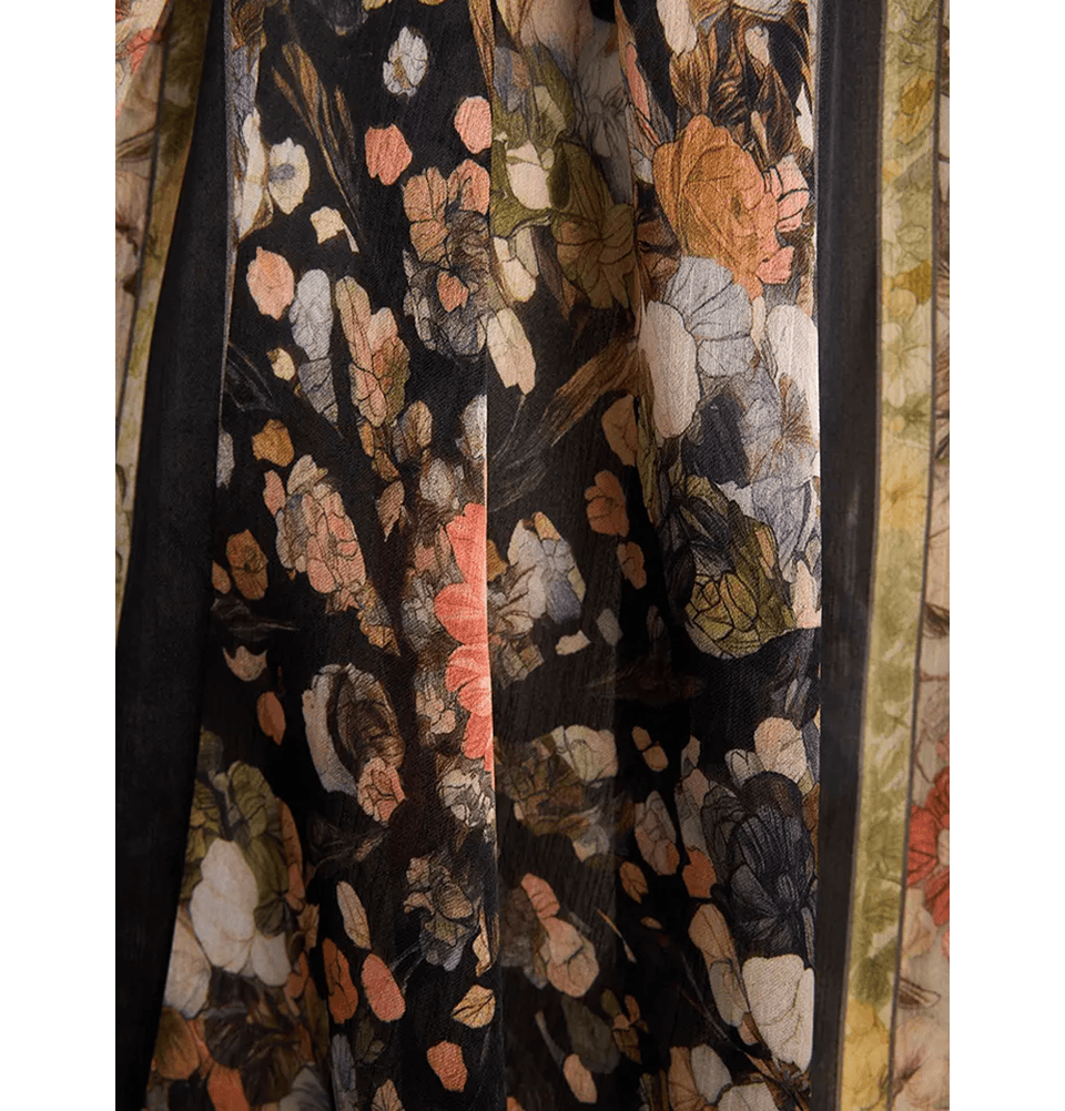 This elegant floral shawl from the Aurora series features a vibrant array of colors complemented by a delicate flower pattern, offering a refined and timeless look. The lightweight fabric with a subtle textured finish adds gentle movement and depth, making it a versatile accessory for both everyday wear and special occasions. Easy to style and comfortable to wear, it pairs effortlessly with coats, dresses, and casual outfits alike, adding a graceful touch to any ensemble.