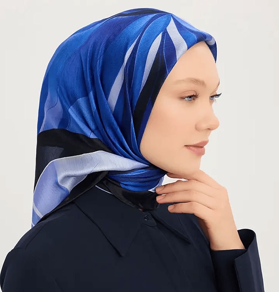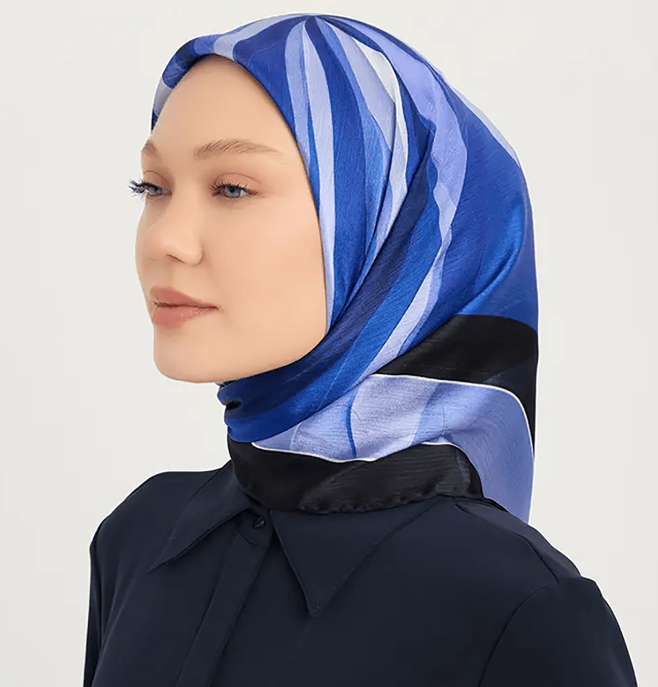 Aurora Satin Square Hijab Celestial Tides - Blue
