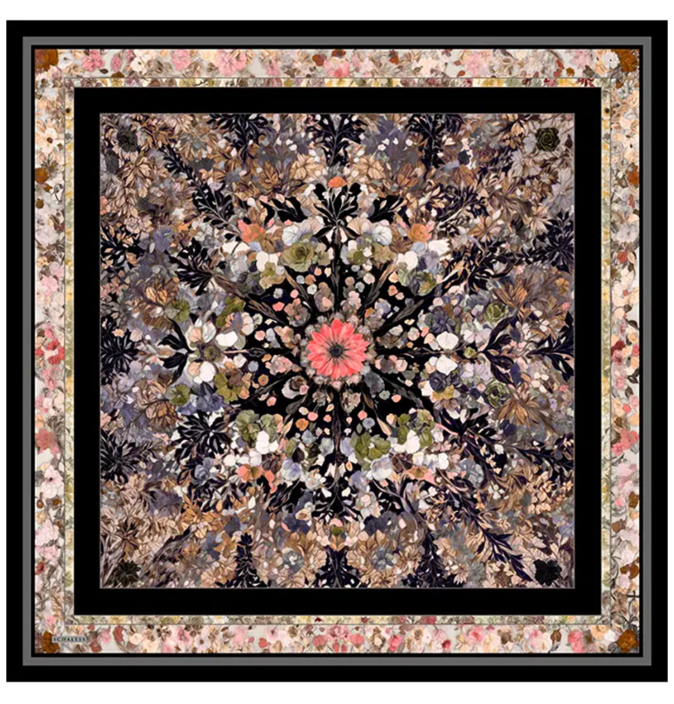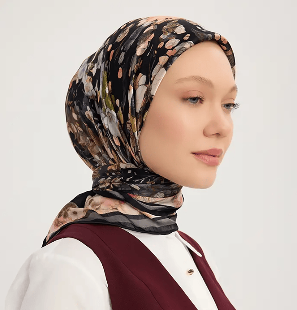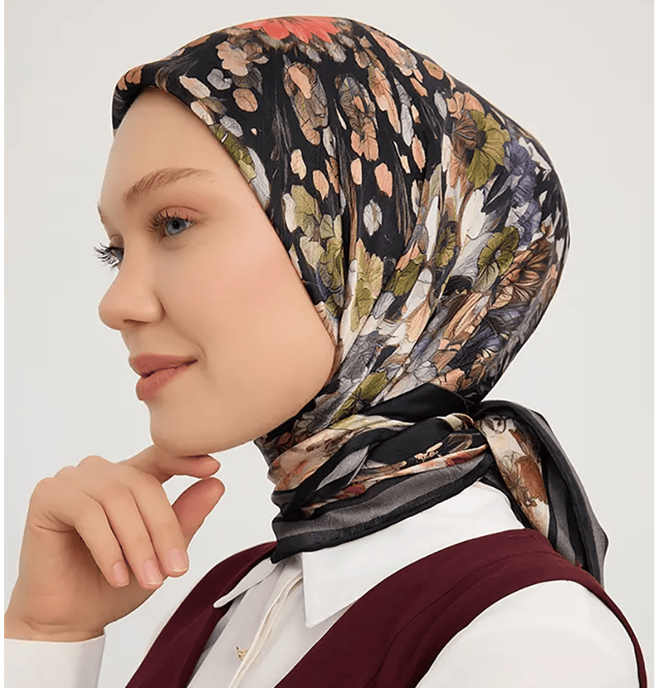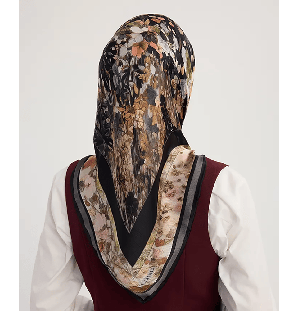 Aurora Satin Square Hijab Cosmic Flowers - Black