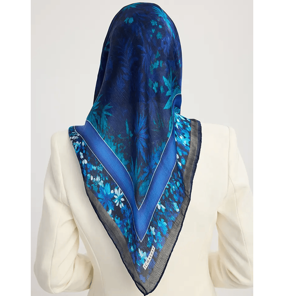 Modefa scarf Blue Aurora Satin Square Hijab Night Garden - Blue