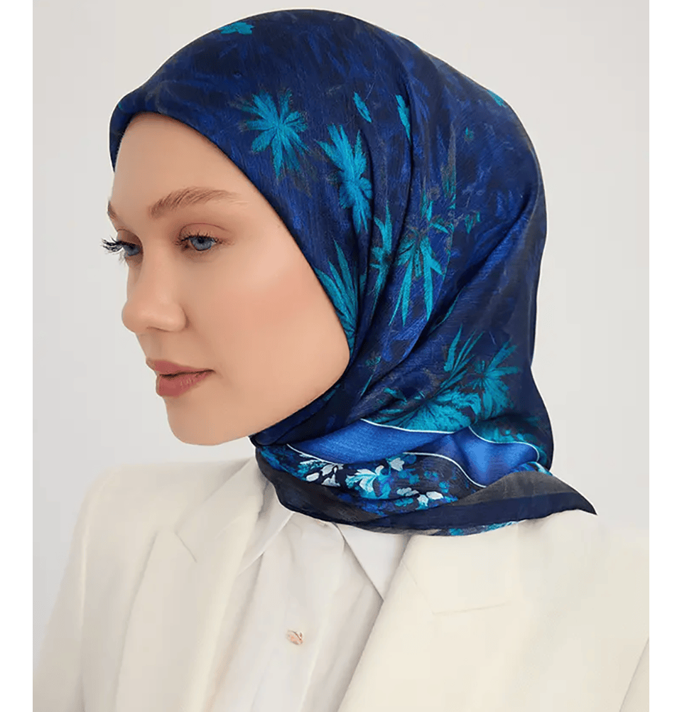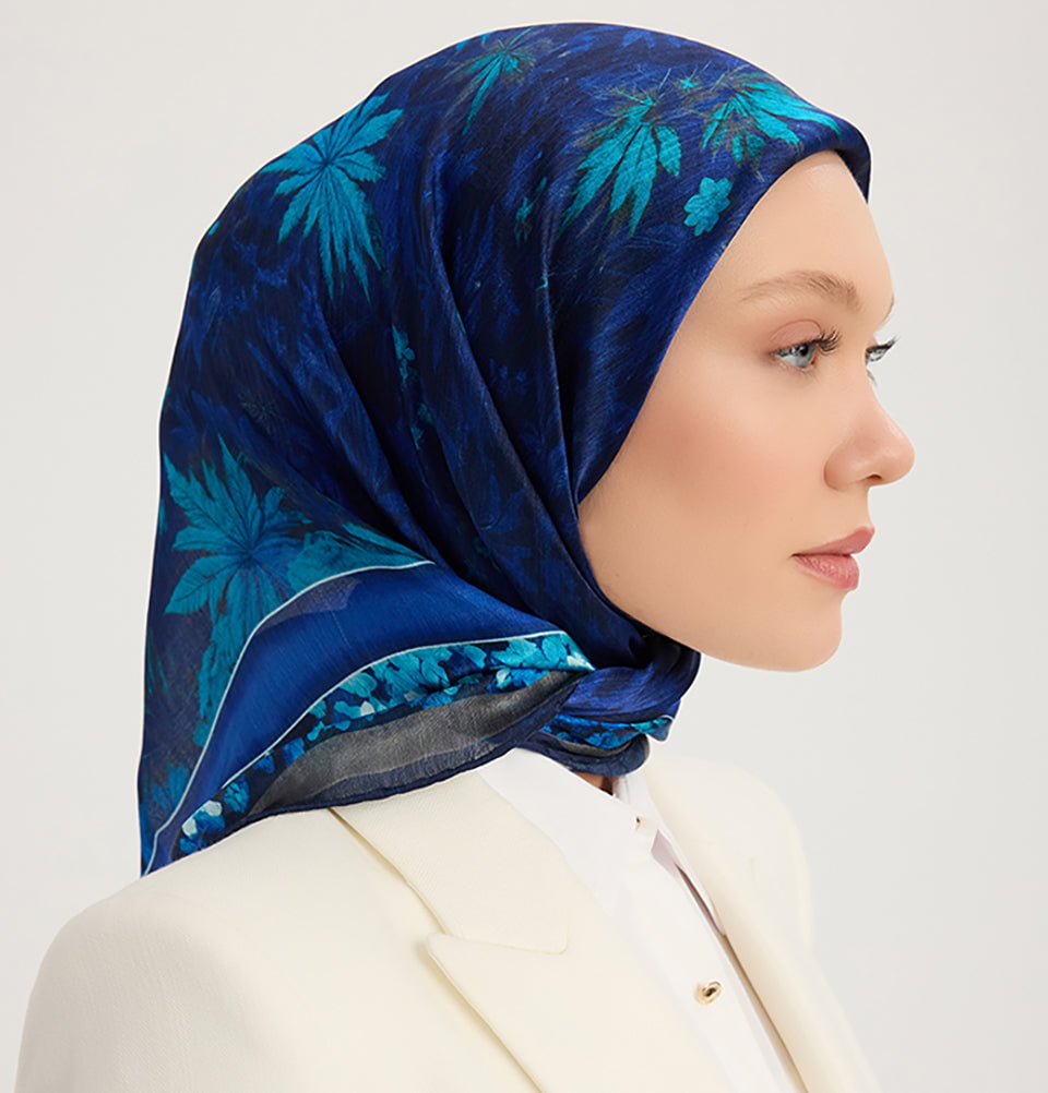 Aurora Satin Square Hijab Night Garden - Blue