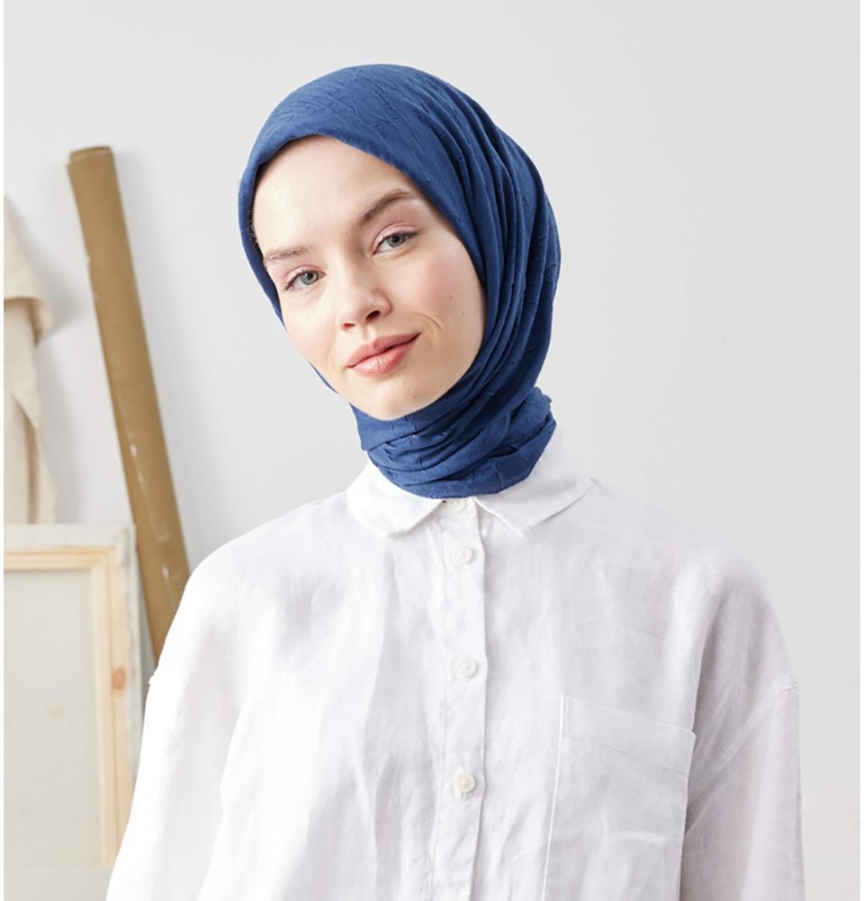 Bamboo Viscose Square Summer Hijab - Dark Blue