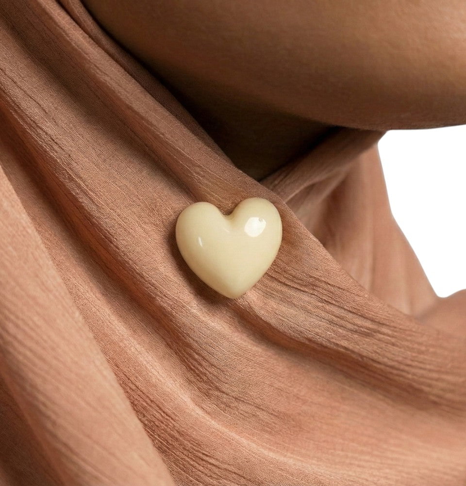 Glossy Heart Shape Magnetic Hijab 'Pin' - Beige