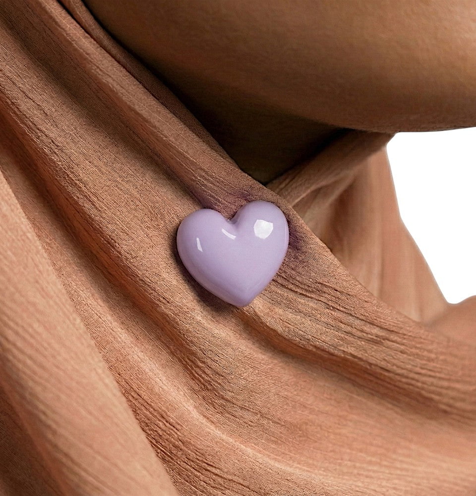 Glossy Heart Shape Magnetic Hijab 'Pin' - Purple