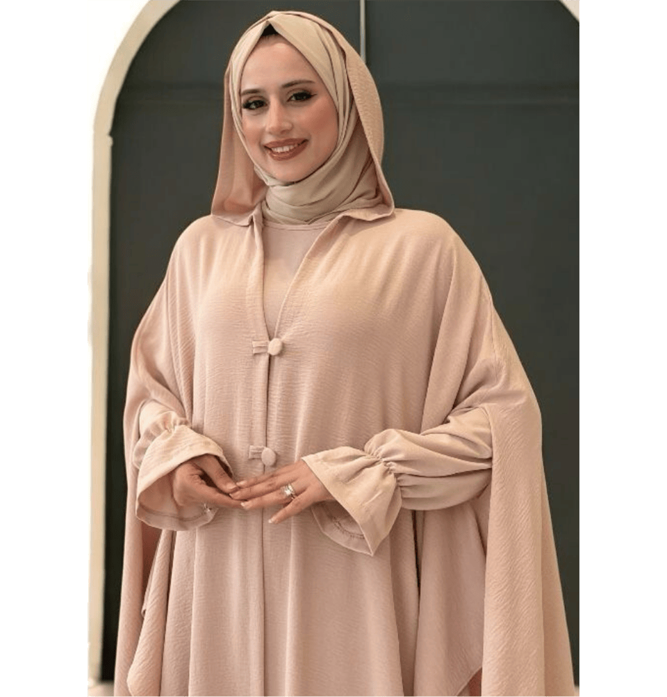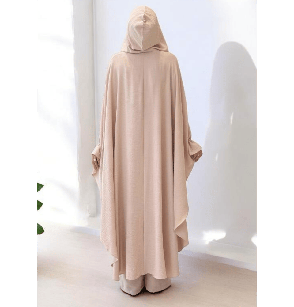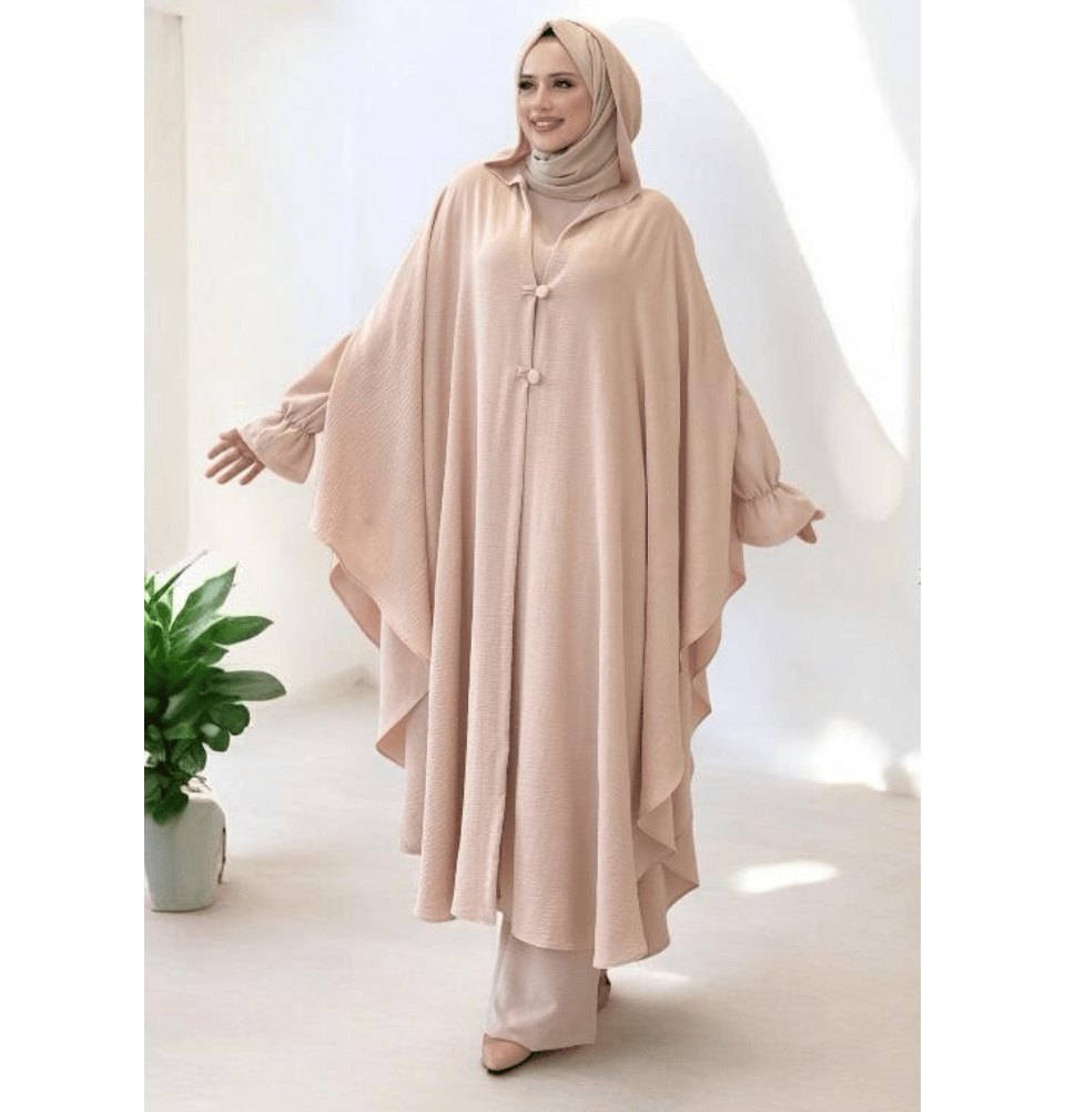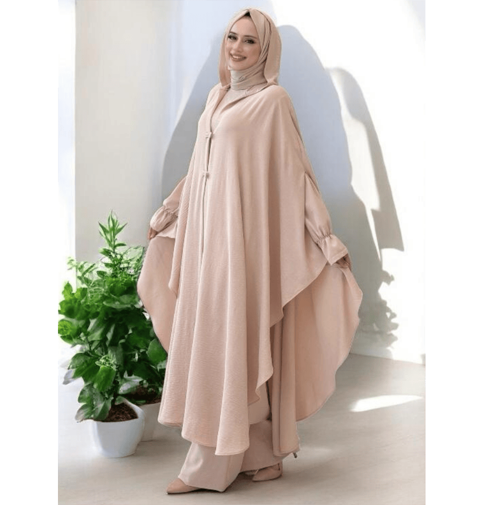 Modest Muslim Woman's 3PC Poncho Abaya - 8663 Beige