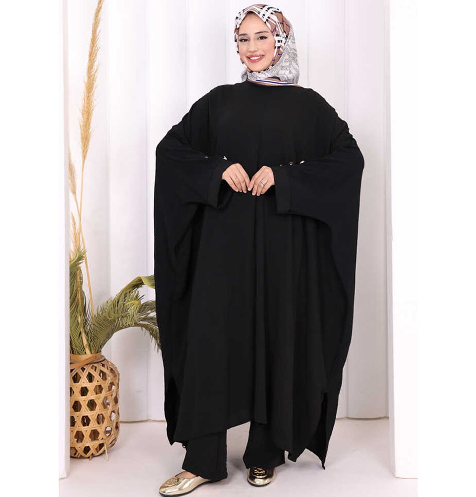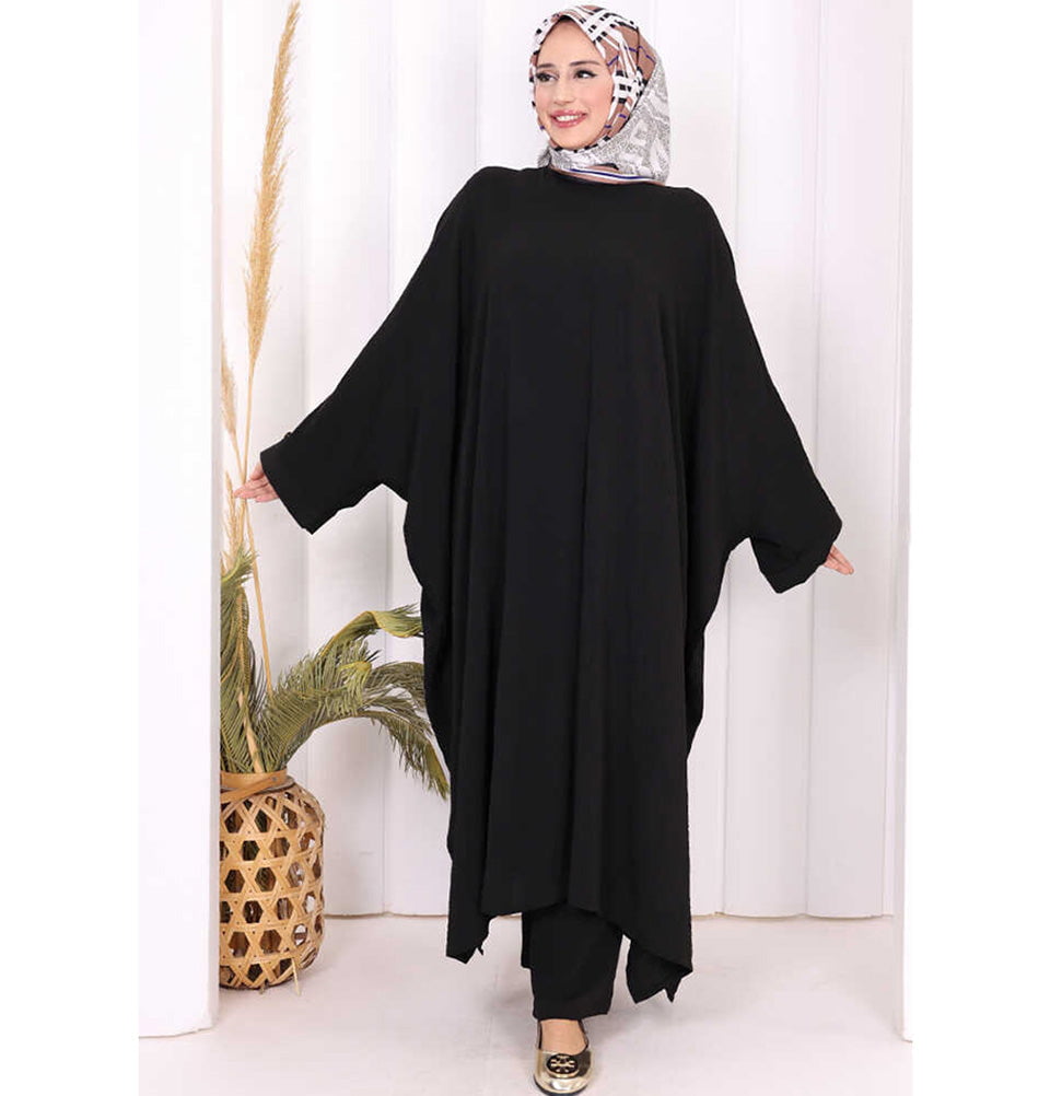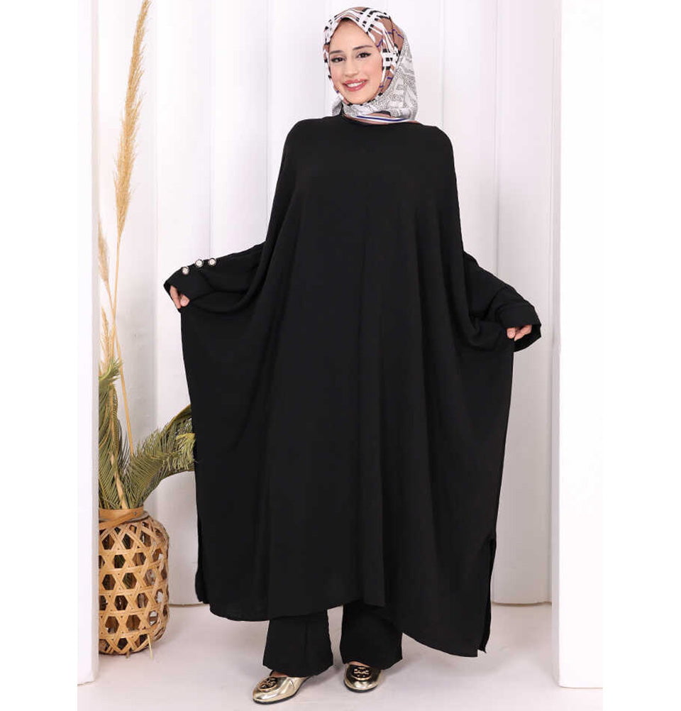 Modest Muslim Woman's Batwing Tunic & Pant Set - 8688 Black