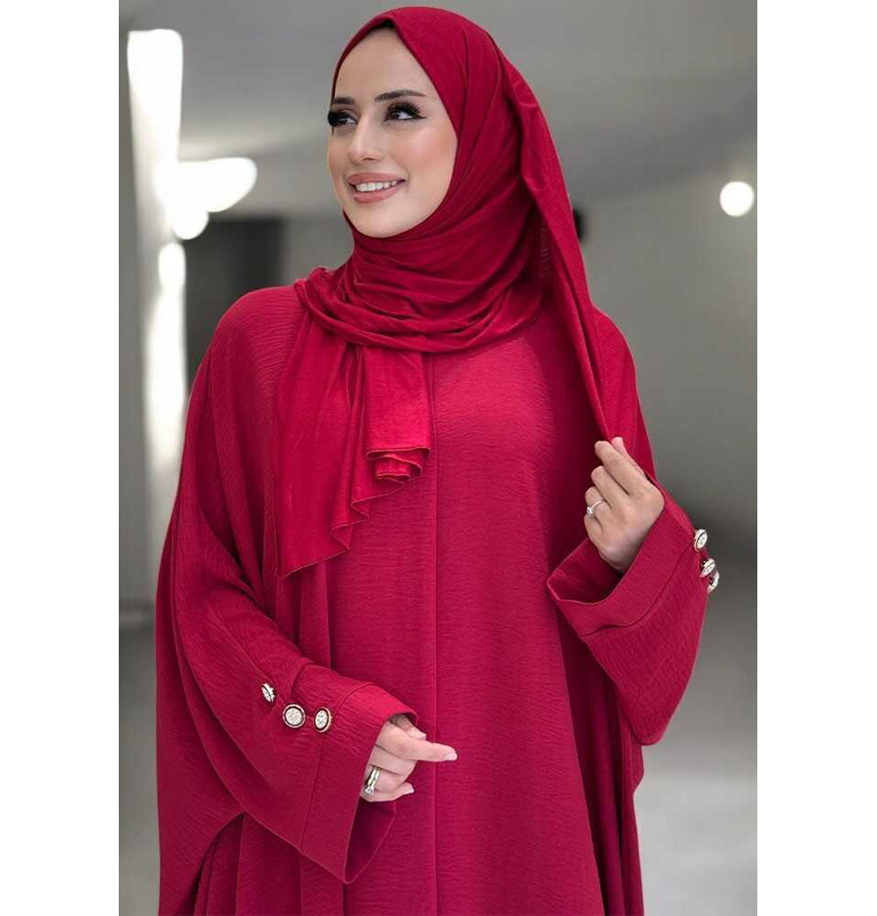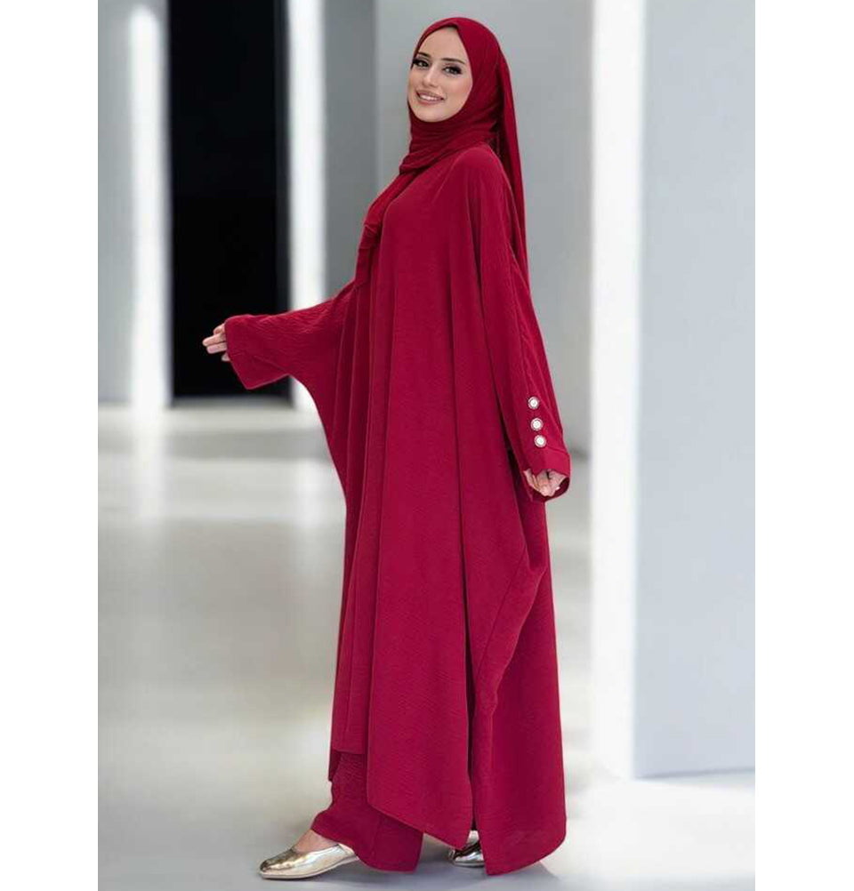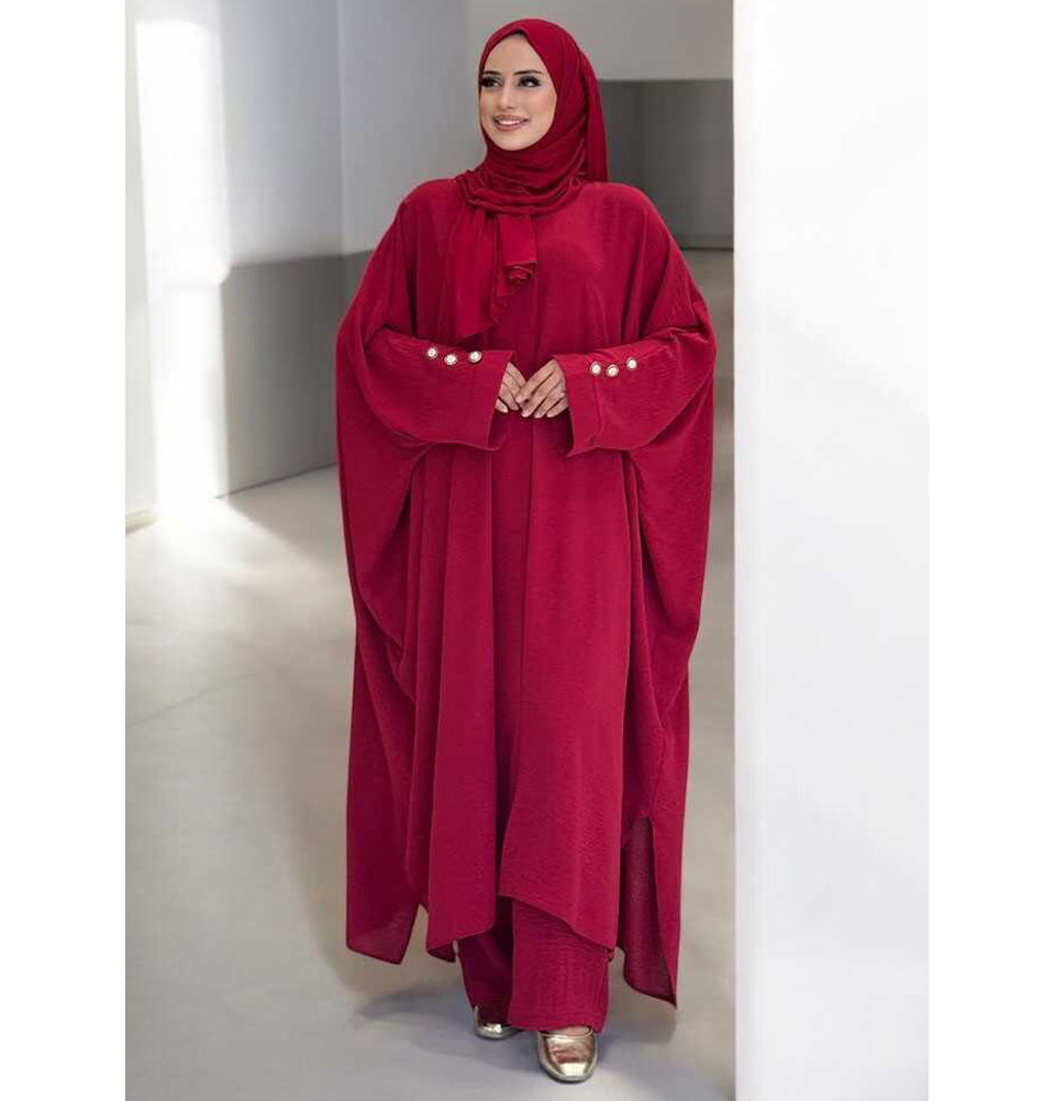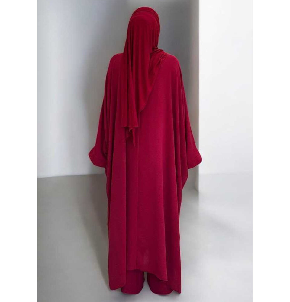 Modest Muslim Woman's Batwing Tunic & Pant Set - 8688 Red
