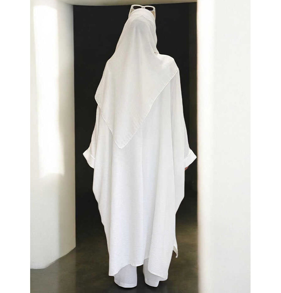 Modest Muslim Woman's Batwing Tunic & Pant Set - 8688 White