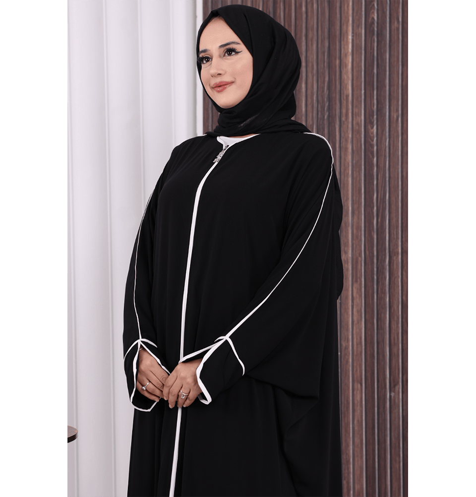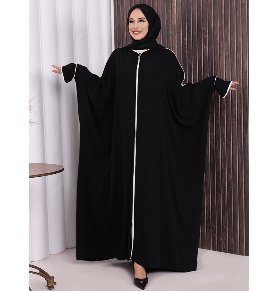 Modest Muslim Woman's Zipped Batwing Abaya - 6002 Black