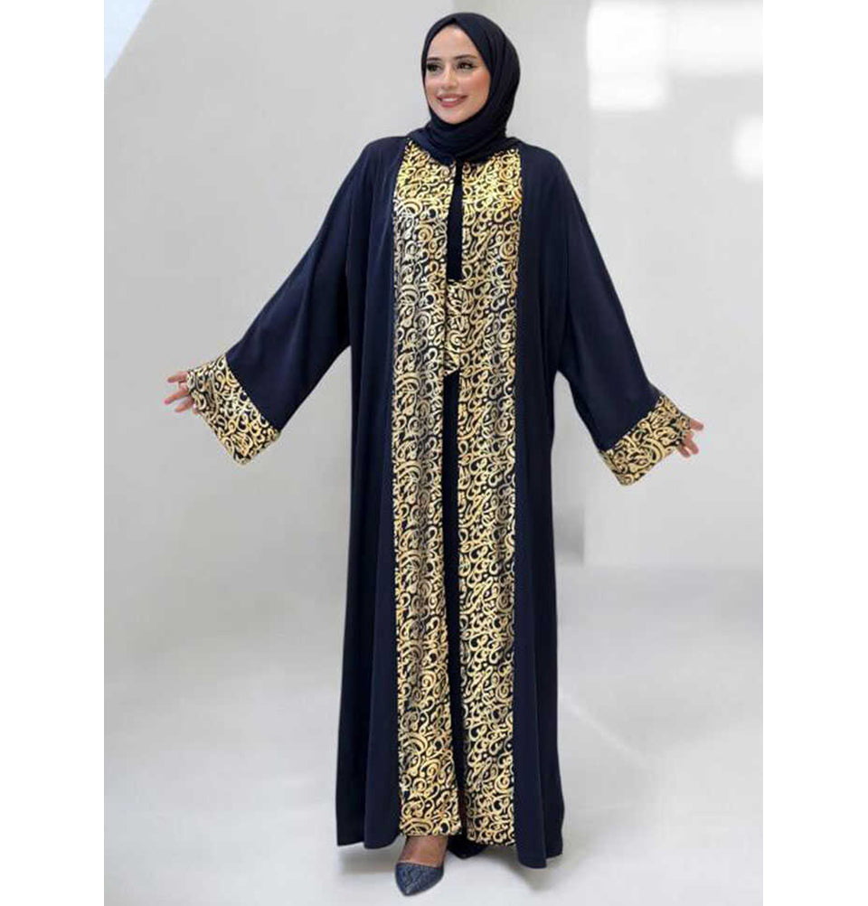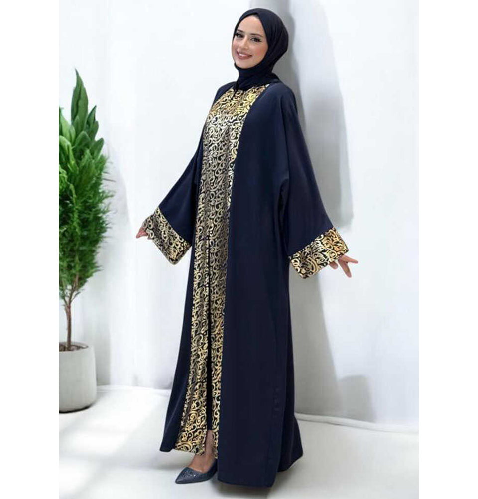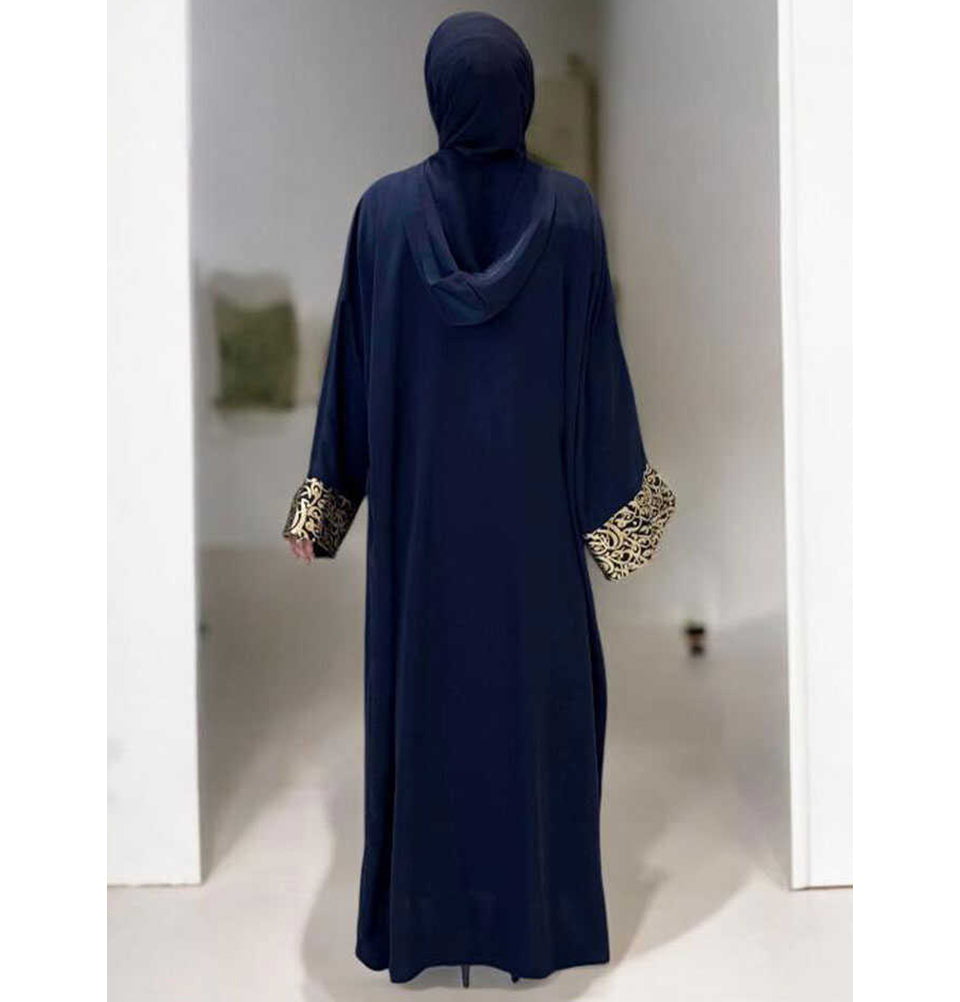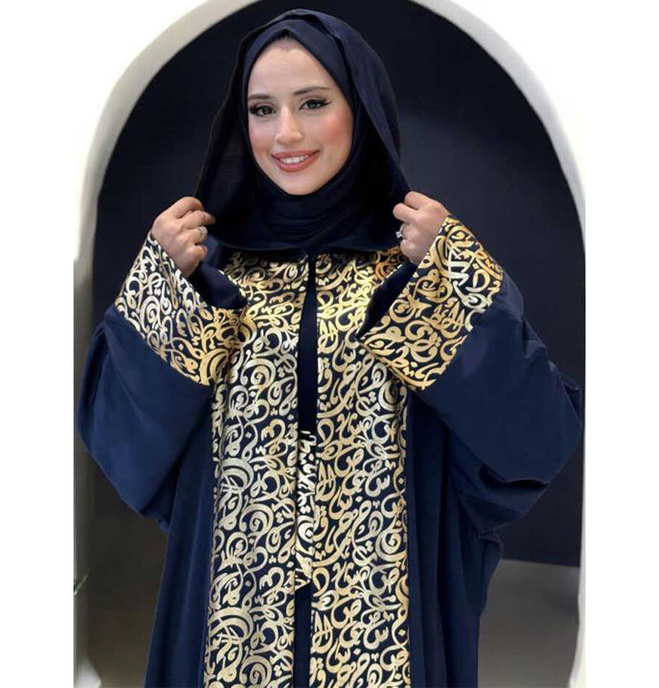 Modest Muslim Women's Arabic Script Abaya - 70014 Navy Blue