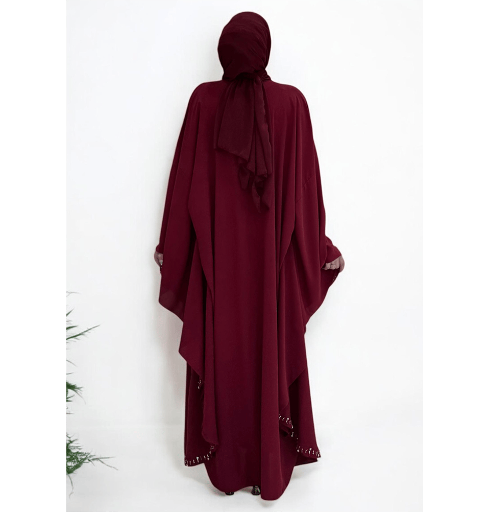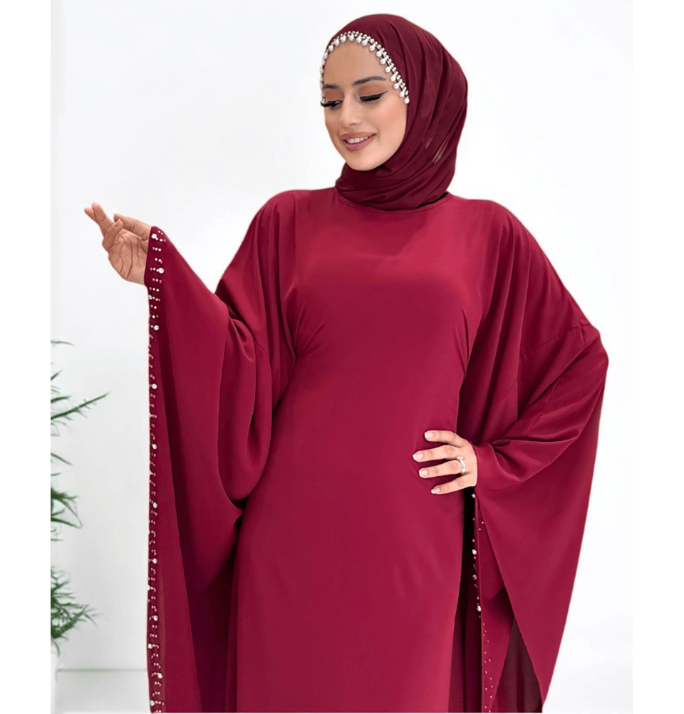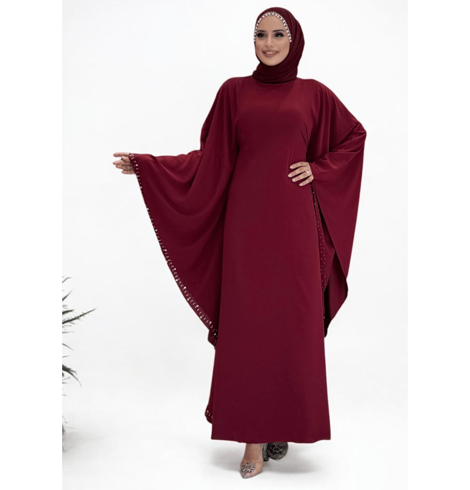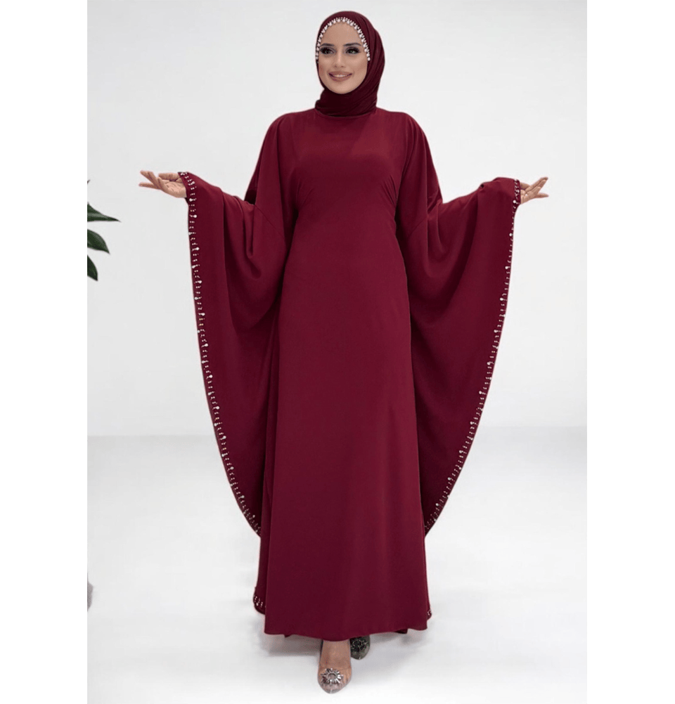 Modest Muslim Women's Embellished Batwing Sleeve Abaya - Red