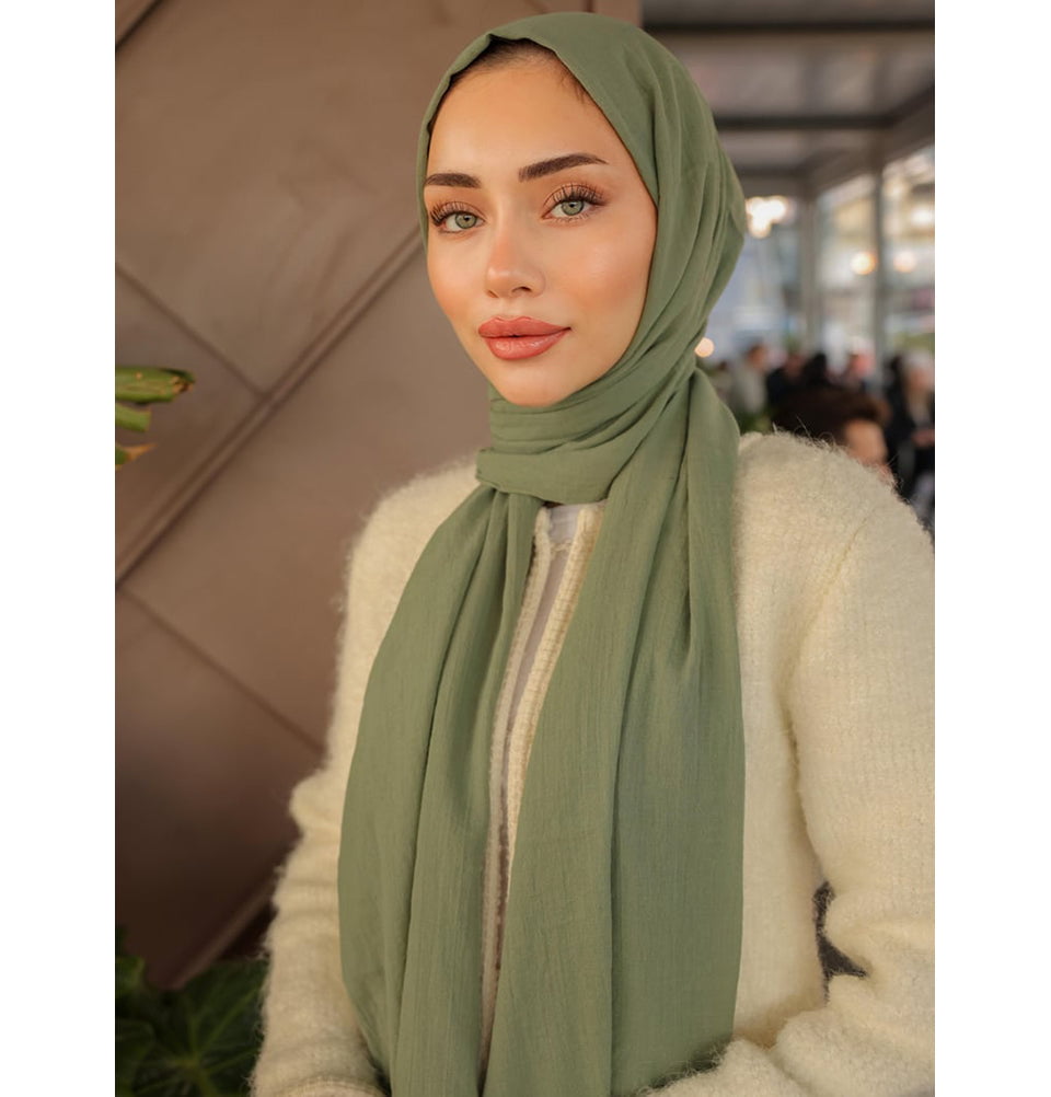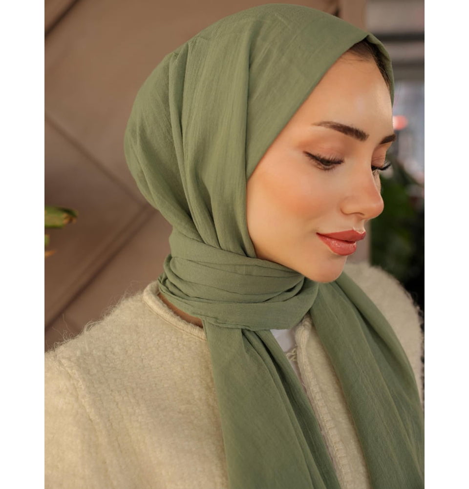 Refresh your style with this effortlessly chic knitted cotton hijab. Made from lightweight breathable cotton, keeping you cool during warmer months, these hijabs are lengthy and soft and drapes easily with minimal slip. The subtle crinkle texture is gentle and comfortable while creating sophisticated looks for everyday wear. Perfect for modest Muslim woman who loves comfort and style. Great for everyday wear.