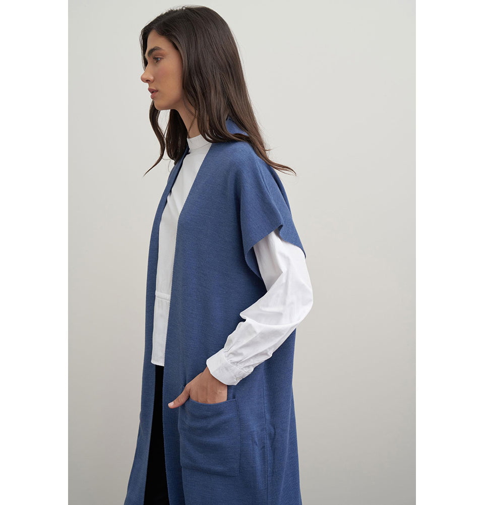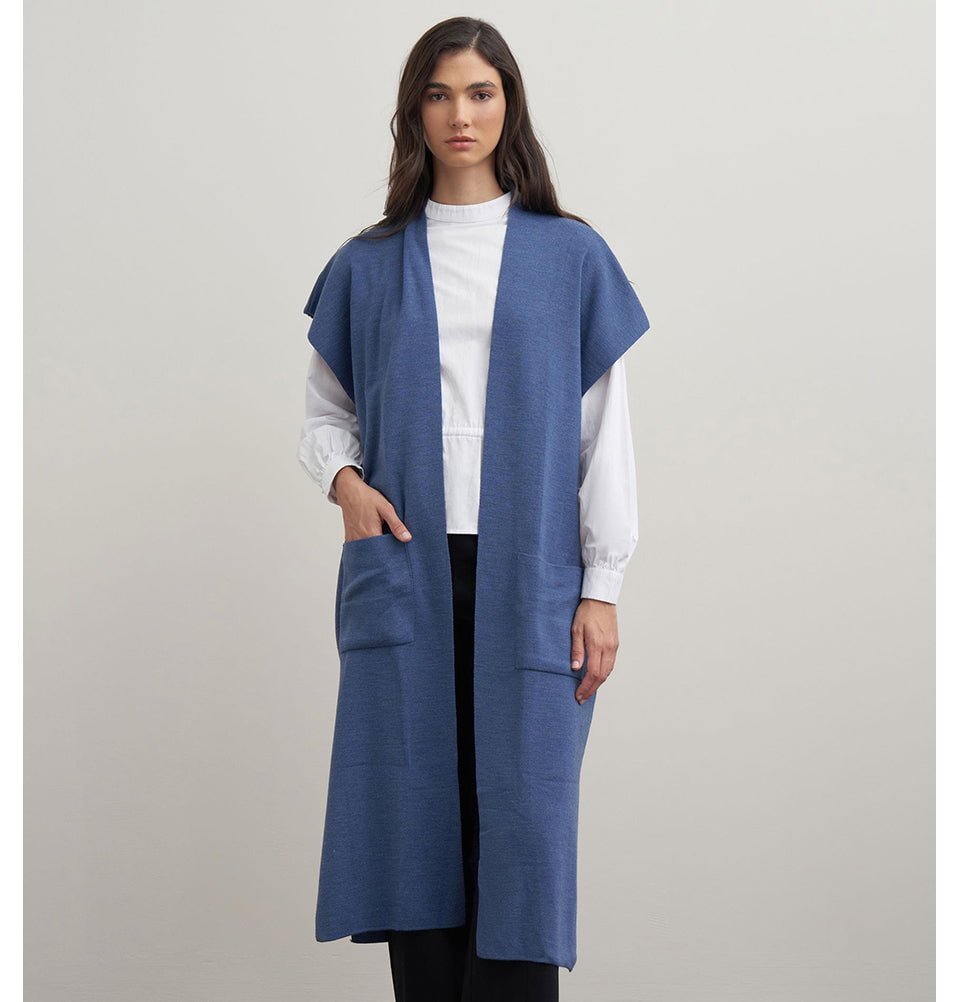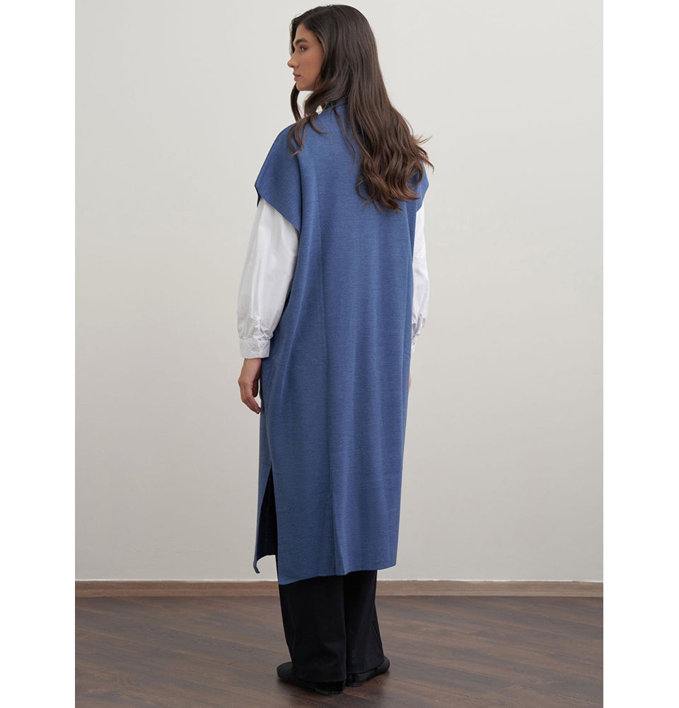 Modern Muslim Women's Pocketed Long Knit Vest - 90016 Indigo