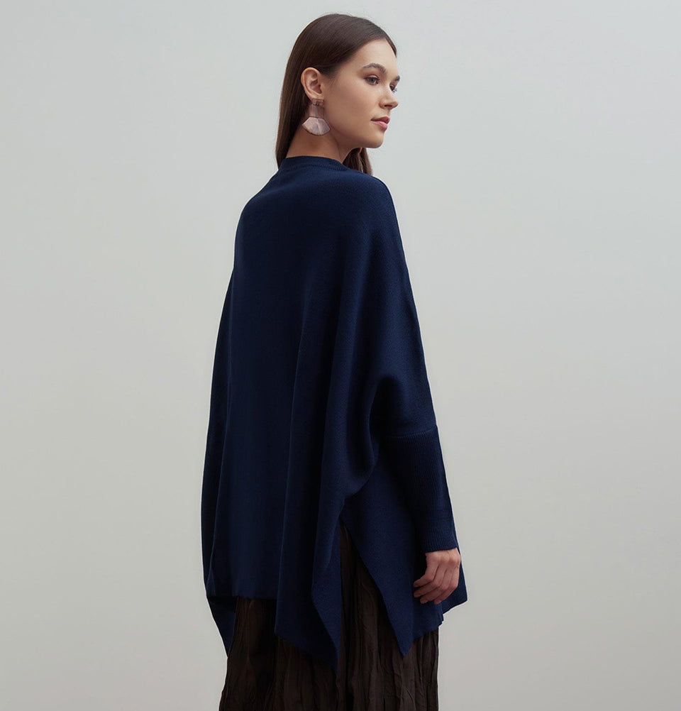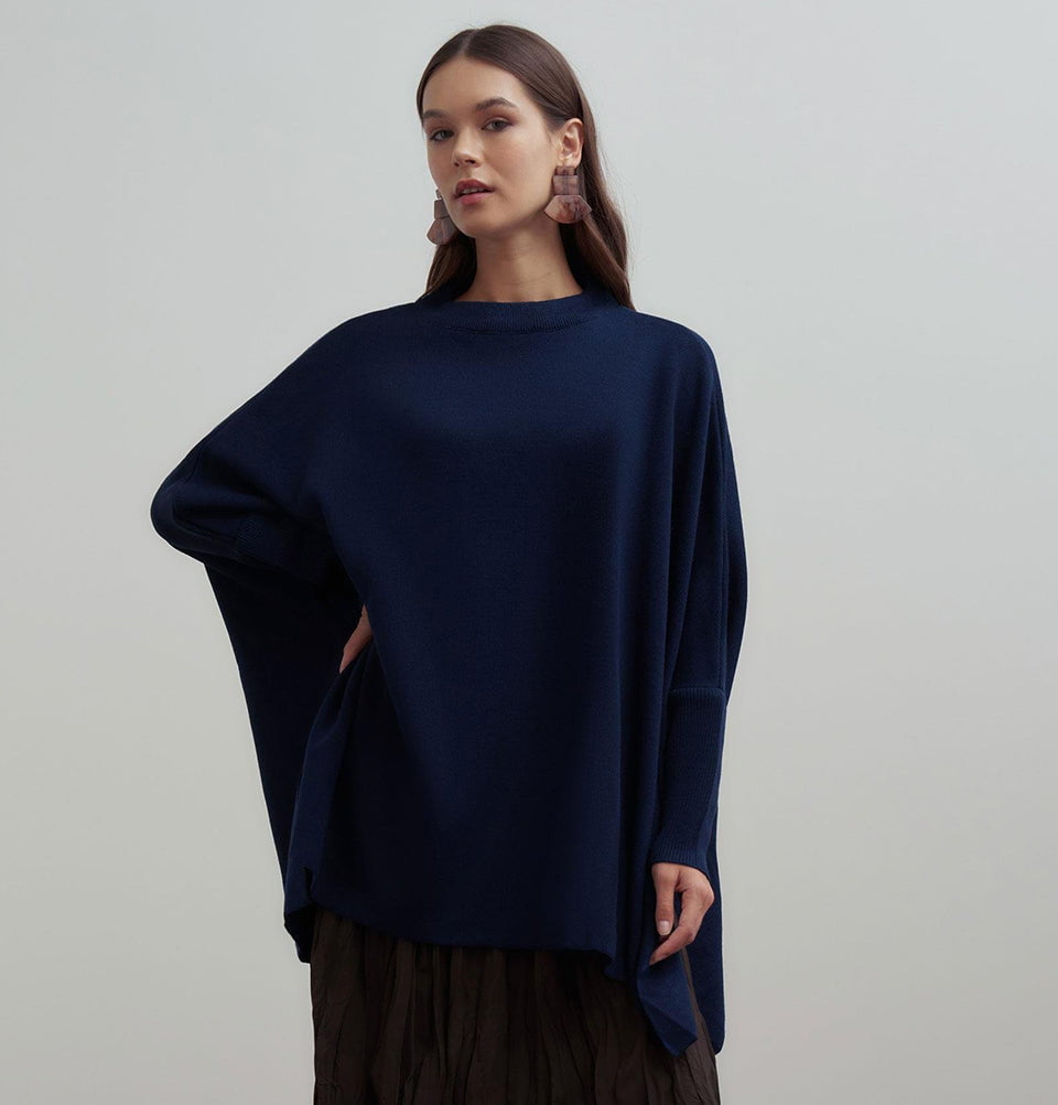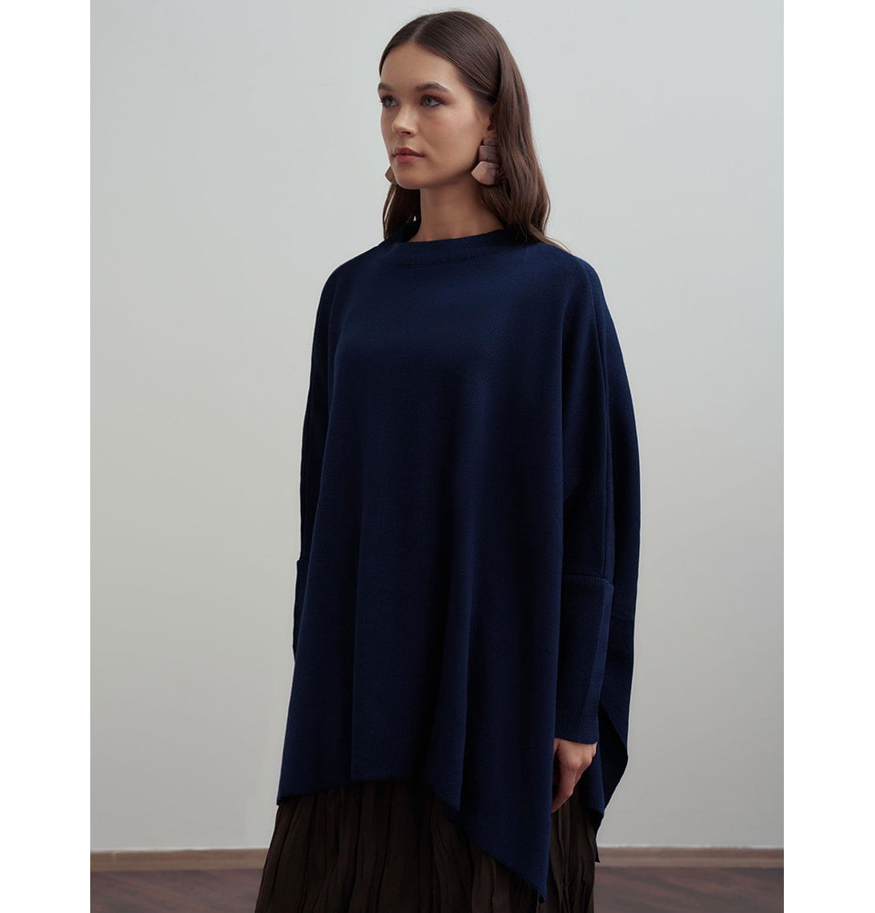 Modest Muslim Women's Asymmetric Cut Knit Sweater - 55048 Navy Blue