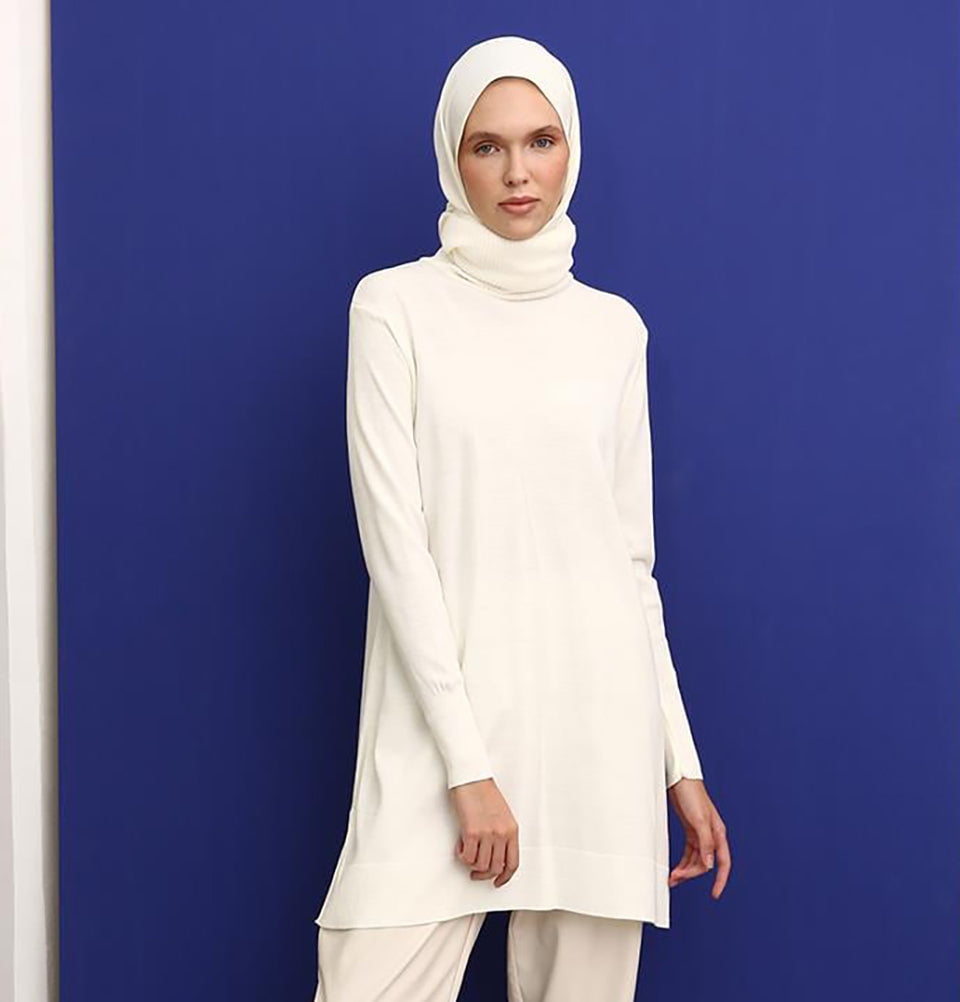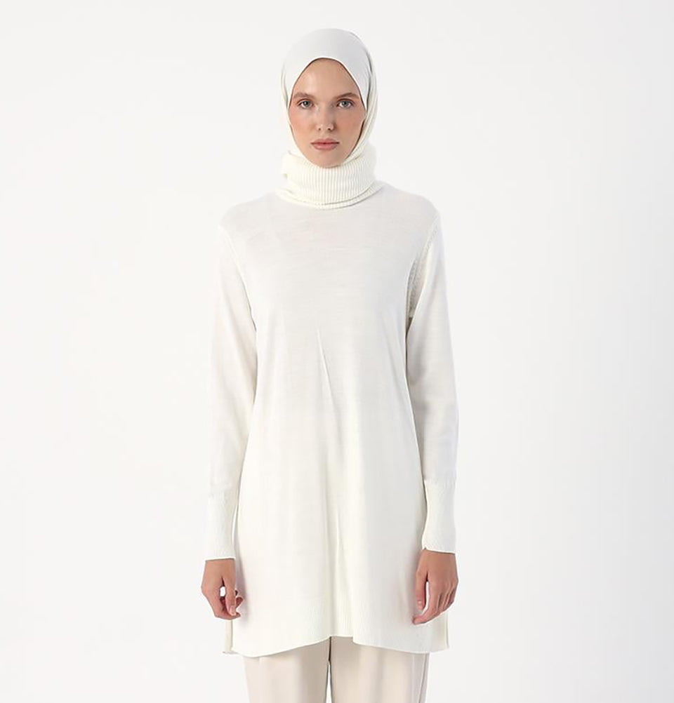 Modest Muslim Women's Long Turtleneck Tunic - 94017 Ecru