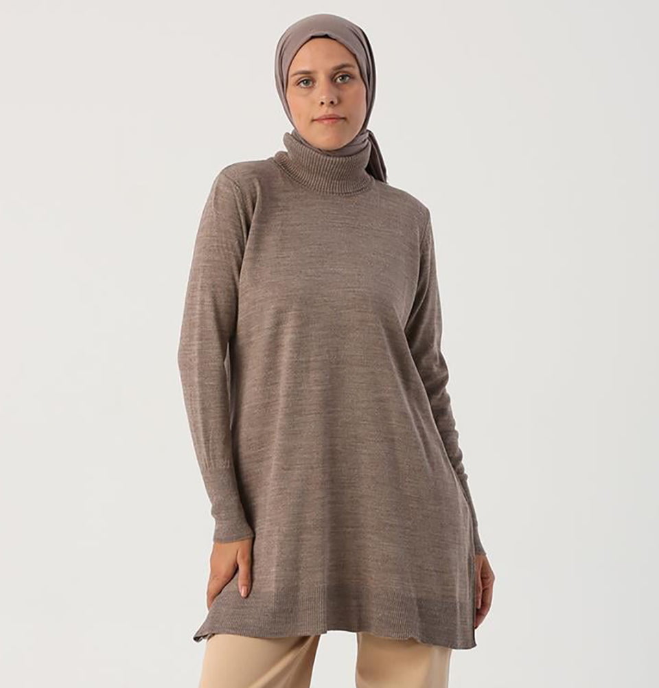 Modest Muslim Women's Long Turtleneck Tunic - 94017 Mink