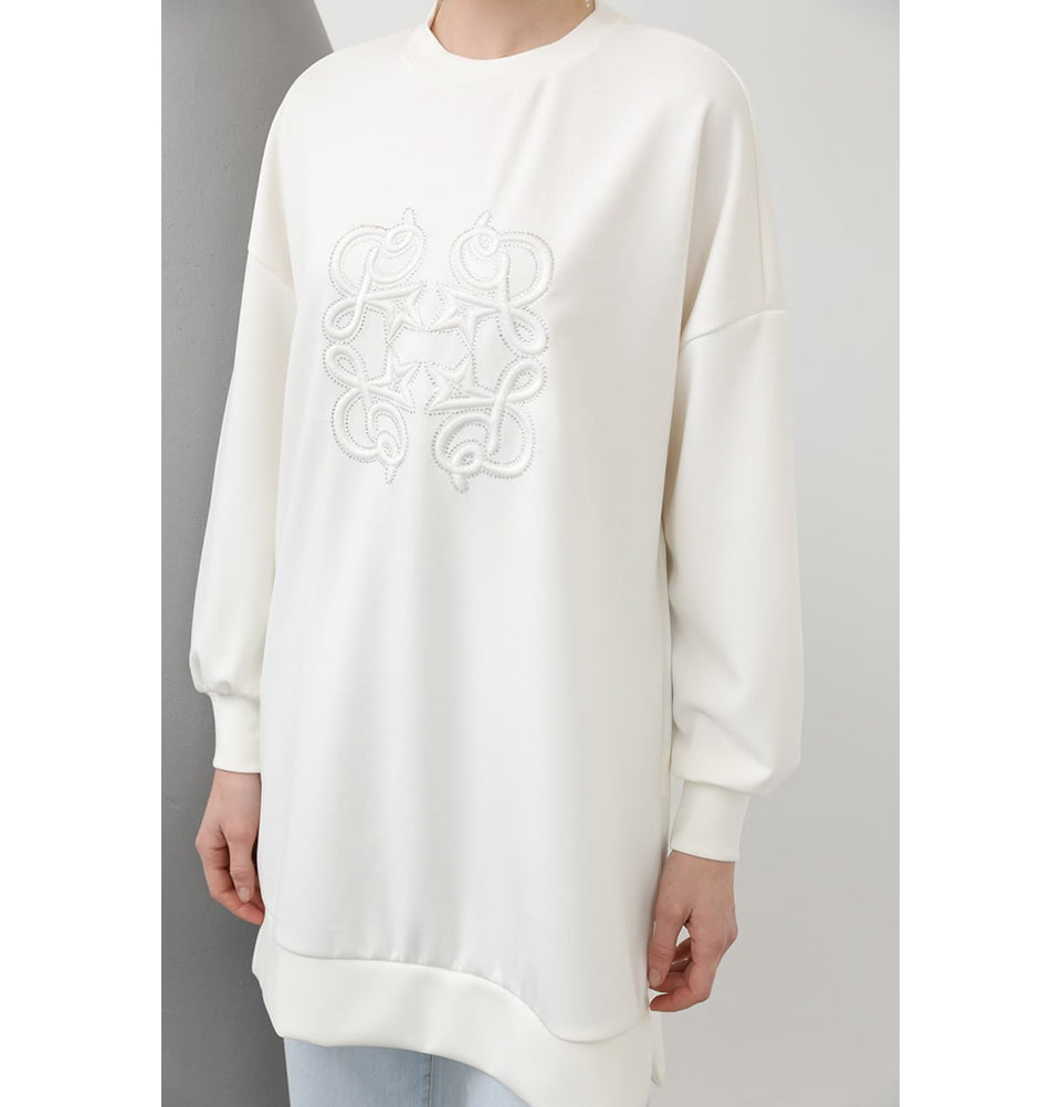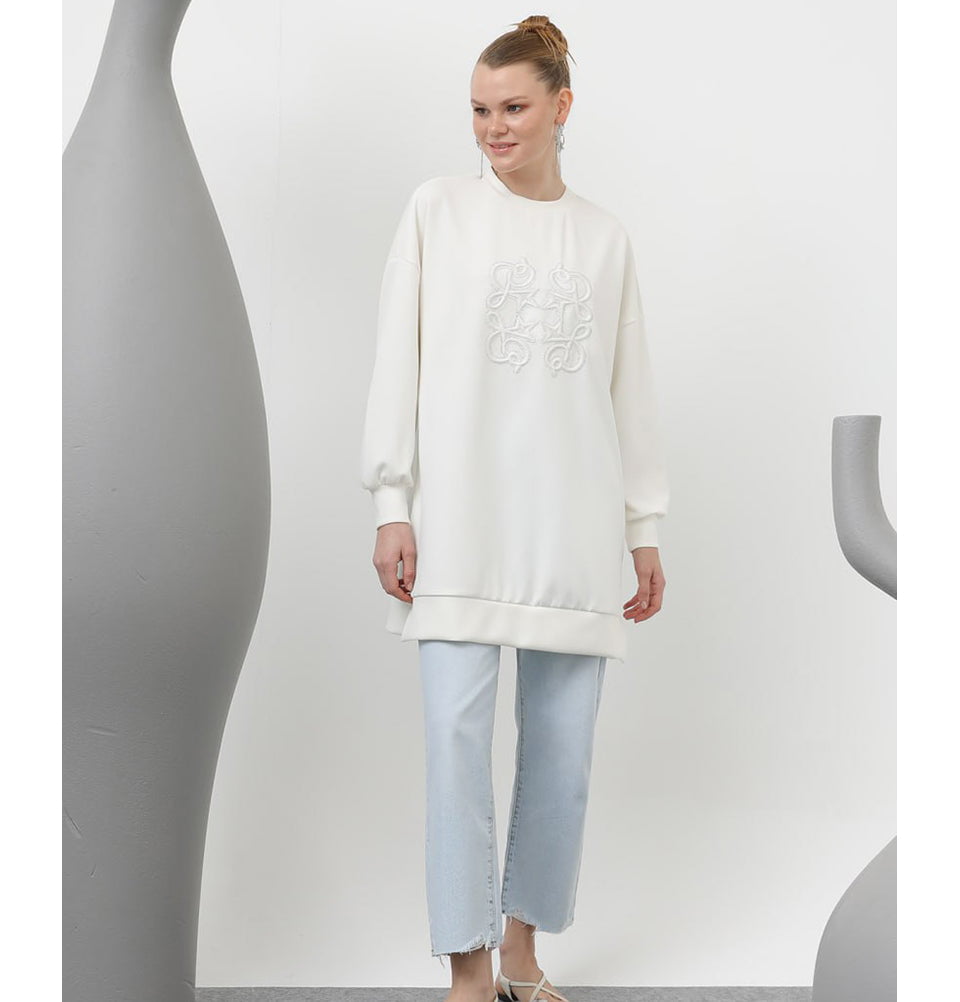 Modest Muslim Women's Modal Blend Embroidered Sweater - 10612 Ecru