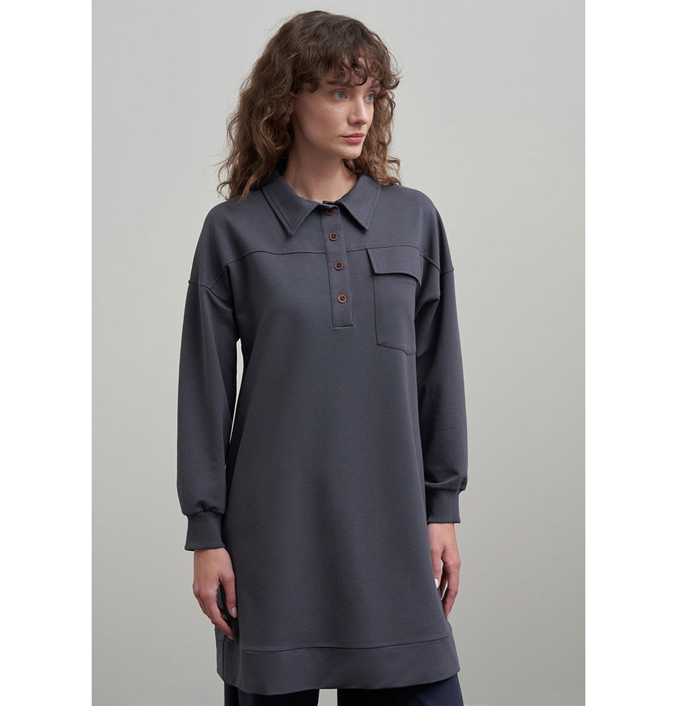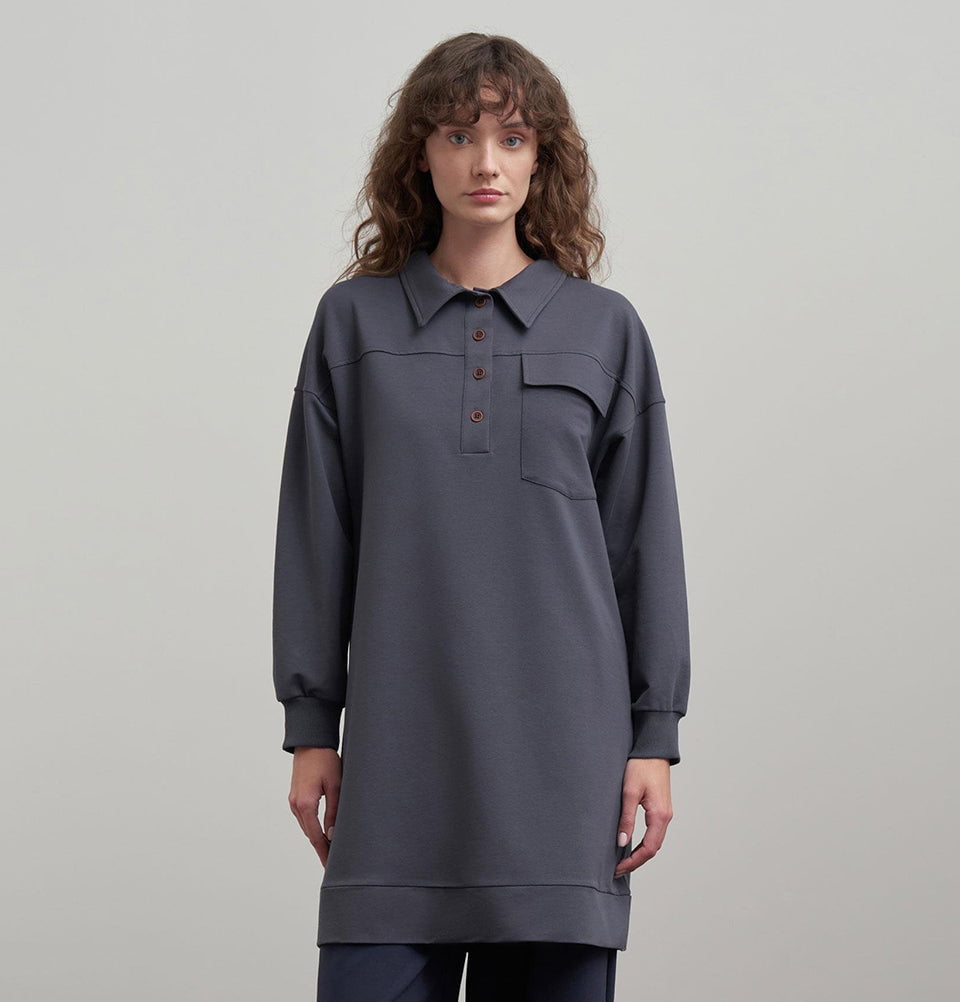 Modest Muslim Women's Quarter Buttoned Tunic - 52352 Charcoal Grey