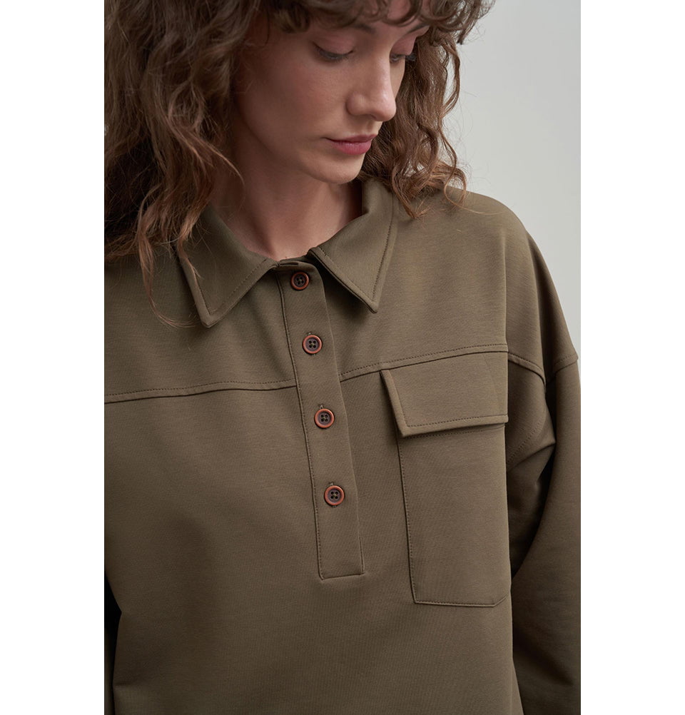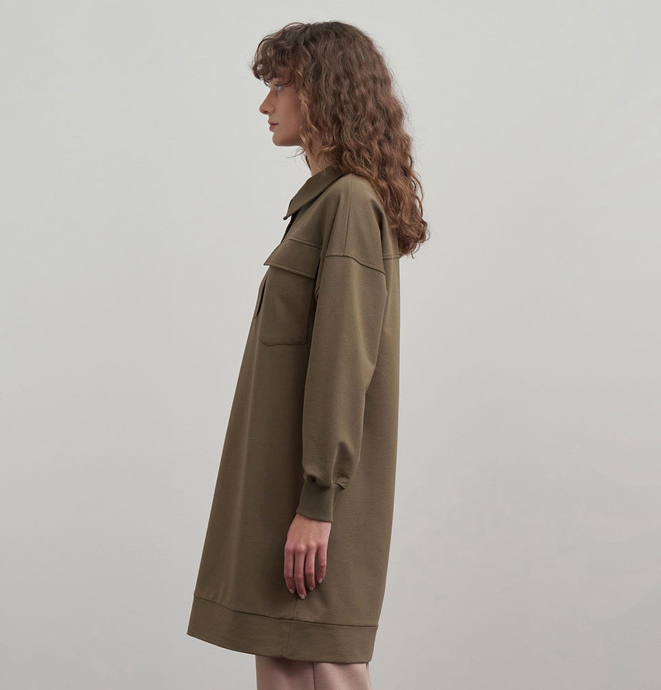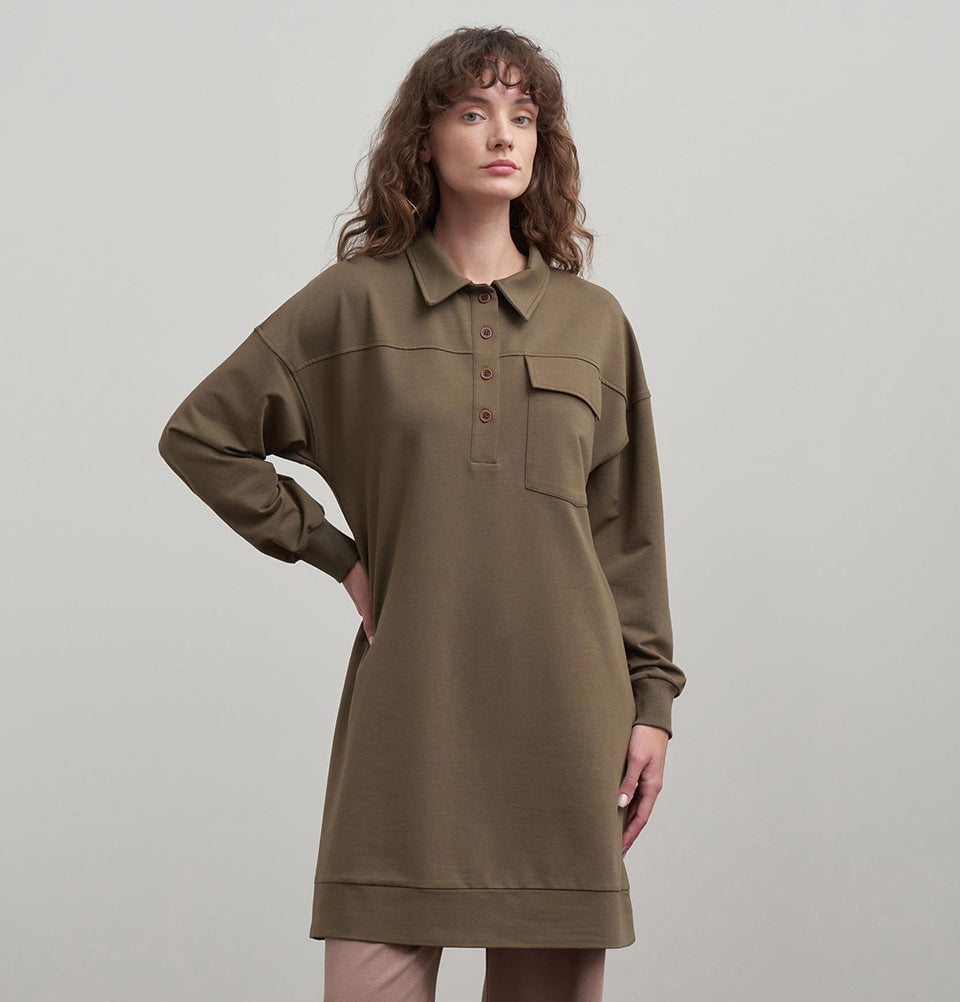 Refresh your casual wardrobe with this Cotton blend Tunic — a perfect fusion of comfort and understated contemporary style. Designed in a soft cotton-blend knit with relaxed, dropping shoulders and a laid-back silhouette, this tunic elevates everyday outfits with its minimalist charm. The classic shirt collar and subtle pocket detailing bring a refined edge to versatile modest layering looks.