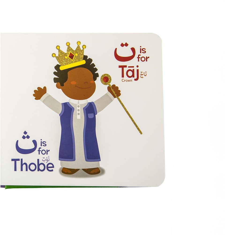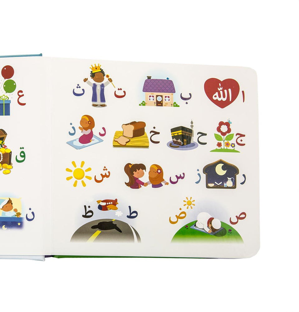 Filled with adorable, eye-catching illustrations, the book captures your baby's attention while making learning enjoyable and memorable. Every letter is thoughtfully paired with a familiar Islamic or Arabic word - such as Allah and Zamzam - helping your child build early vocabulary recognition and form meaningful connections from the very beginning.'