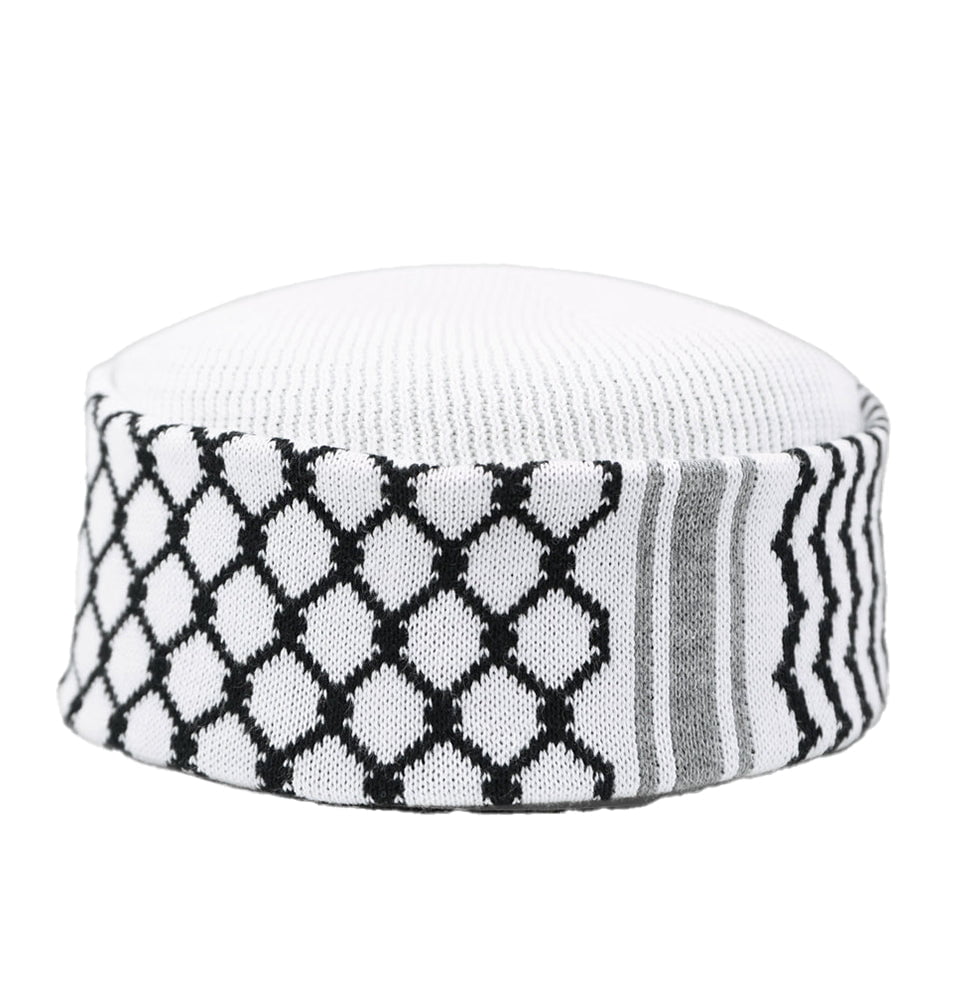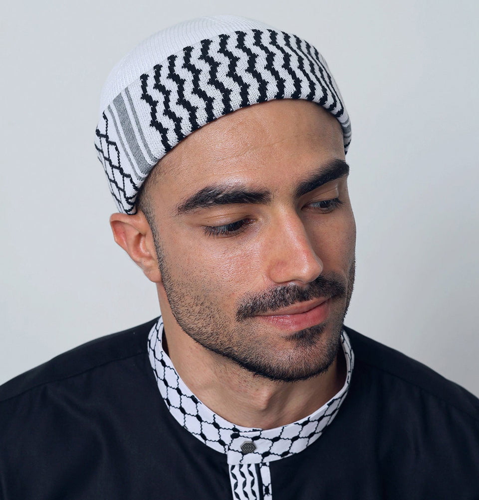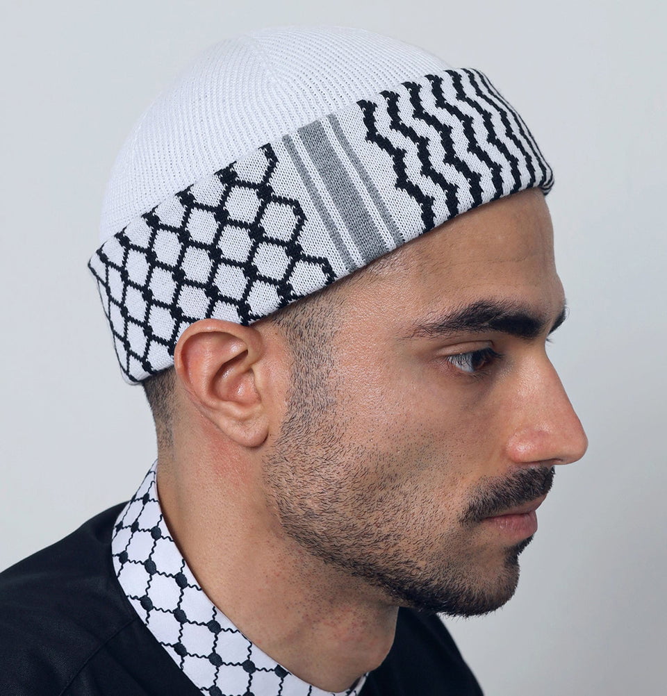 Men's Premium Knitted Beanie - White Kuffiyeh