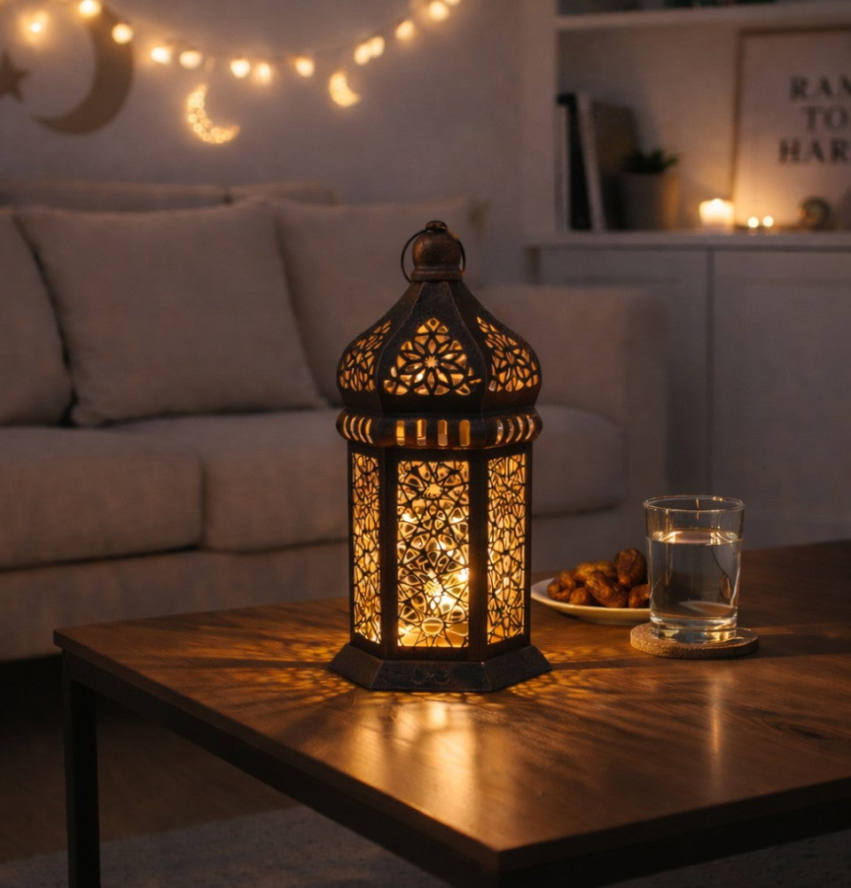 Welcome Ramadan with these beautiful lanterns that are intricate and versatile. There's nothing like a lantern to help bring the feeling and atmosphere of Ramadan into your home! This style of lantern will be a beautiful addition to your Ramadan and Eid decor as it projects the beautiful Andalusia mandala pattern and calligraphy written Ramadan all over the room.