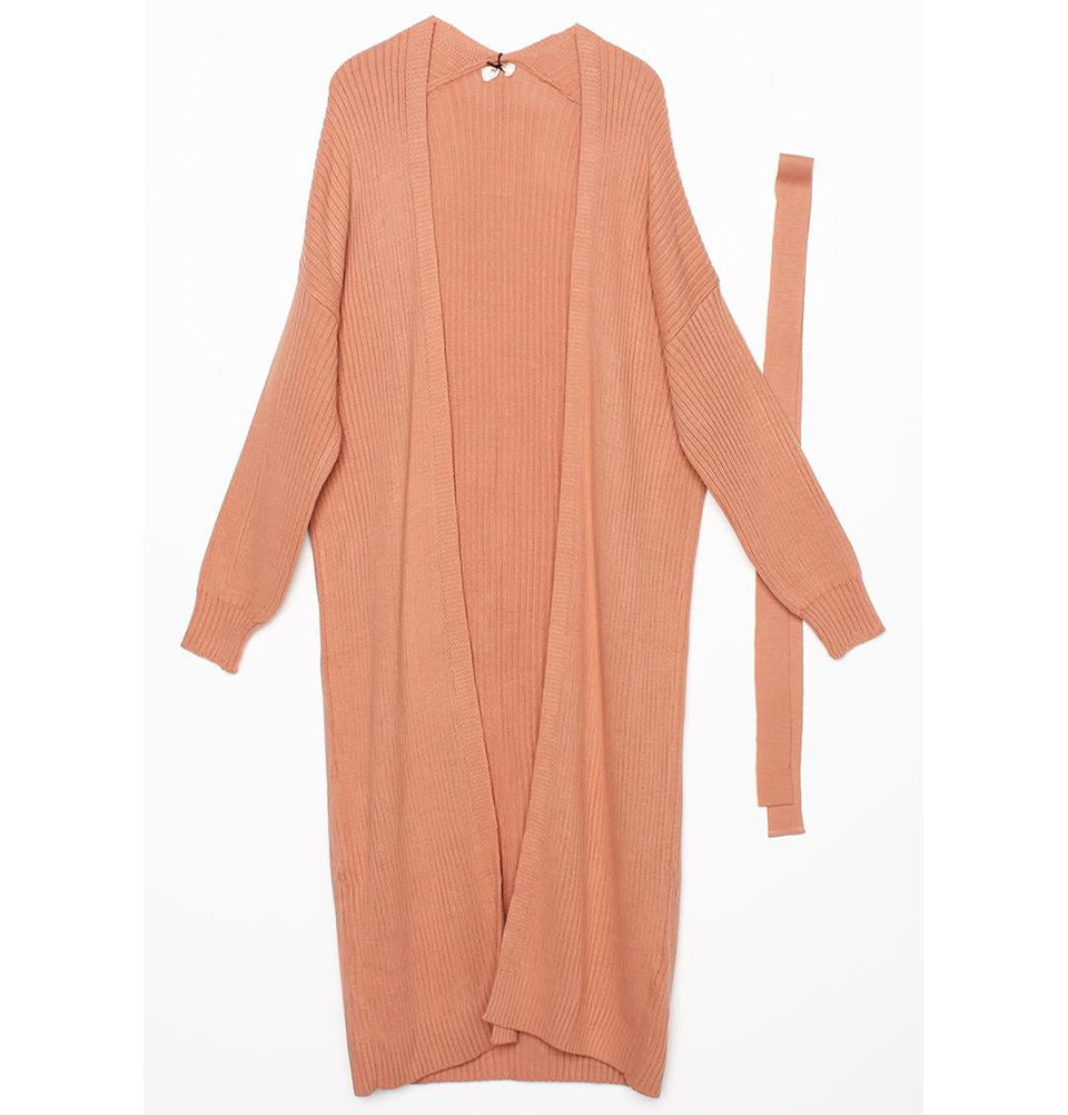 A wardrobe essential for modest layering, this ribbed long knitted cardigan blends minimalist design with everyday comfort. The extended length provides reliable coverage, while the vertical rib texture adds subtle structure and a flattering drape.