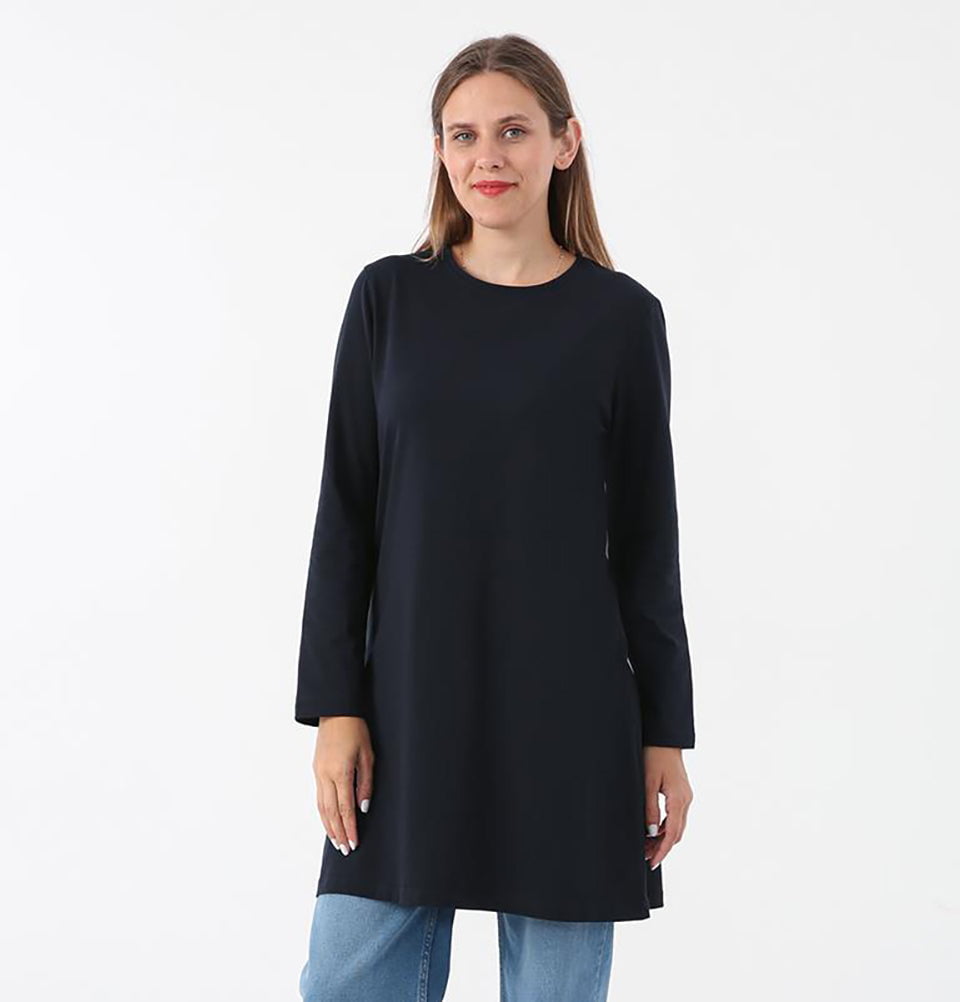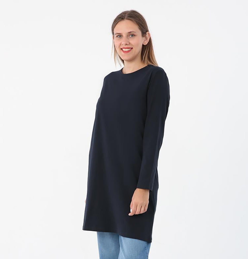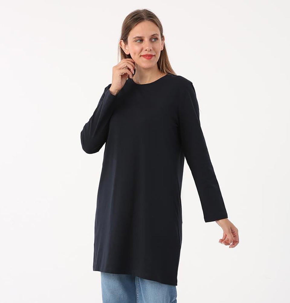 Modest Muslim Women's Cotton Long Sleeve Shirt - 52049 Navy Blue