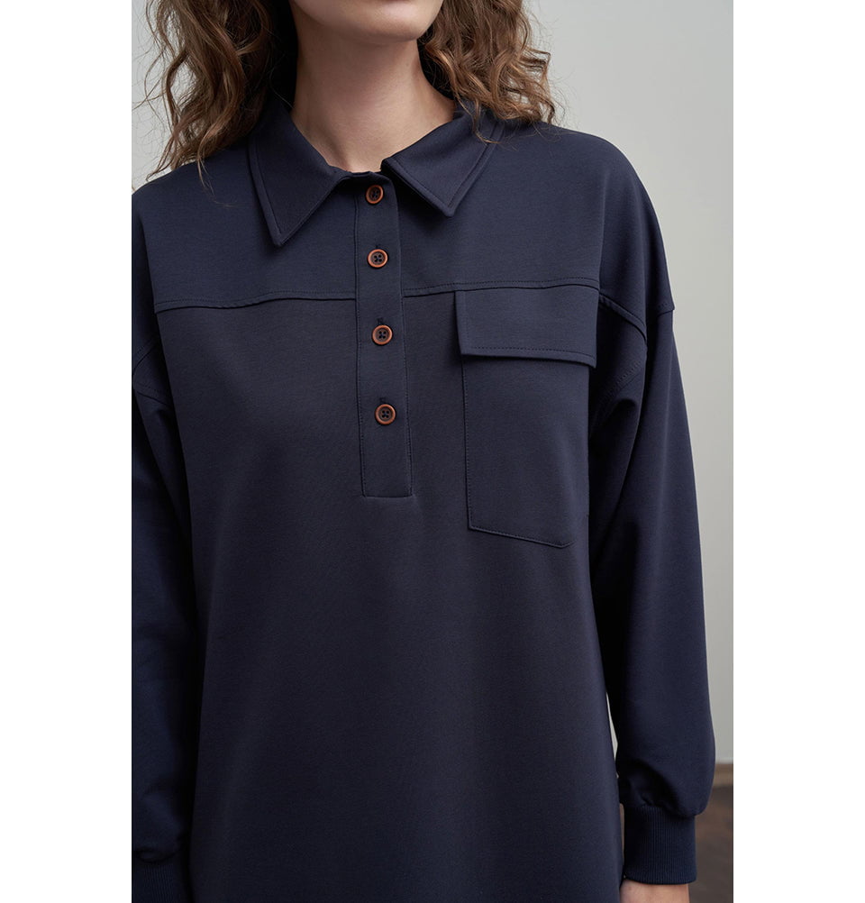 Modest Muslim Women's Quarter Buttoned Tunic - 52352 Navy Blue