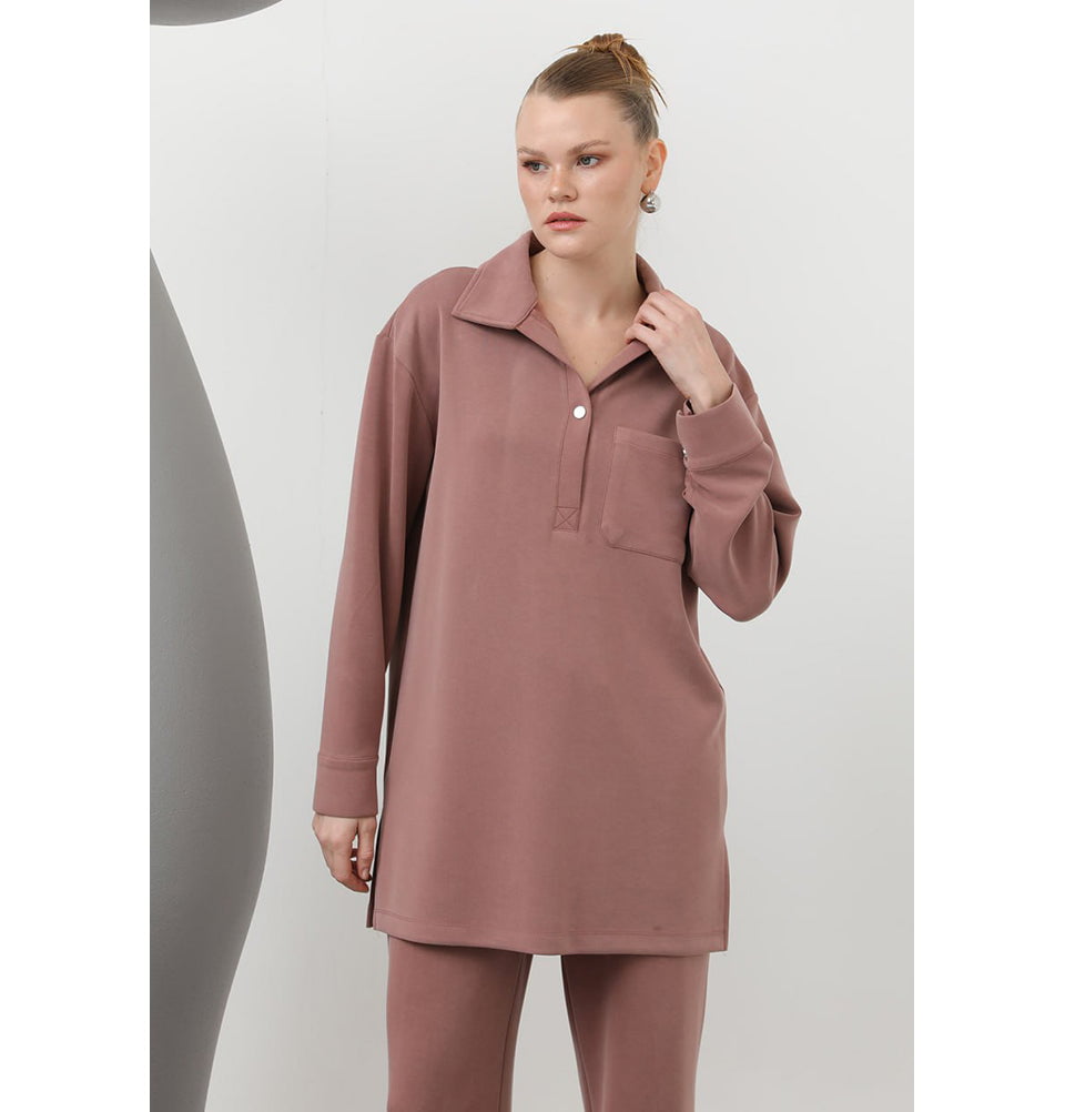 Modest Muslim Women's Modal Blend Pullover with Sweatpants Set - 20605 Pink