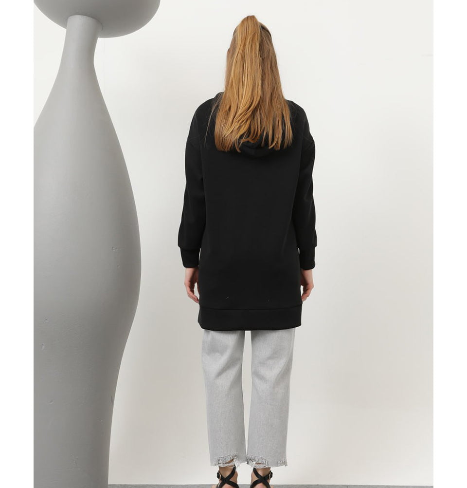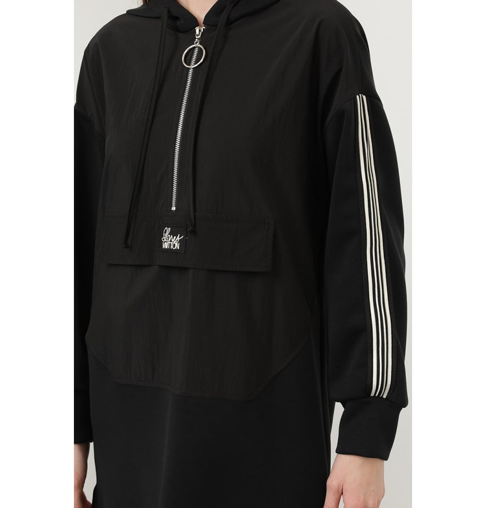 Muslim Women's Modal Blend Striped Hooded Half-Zip Tunic - 10610 Black