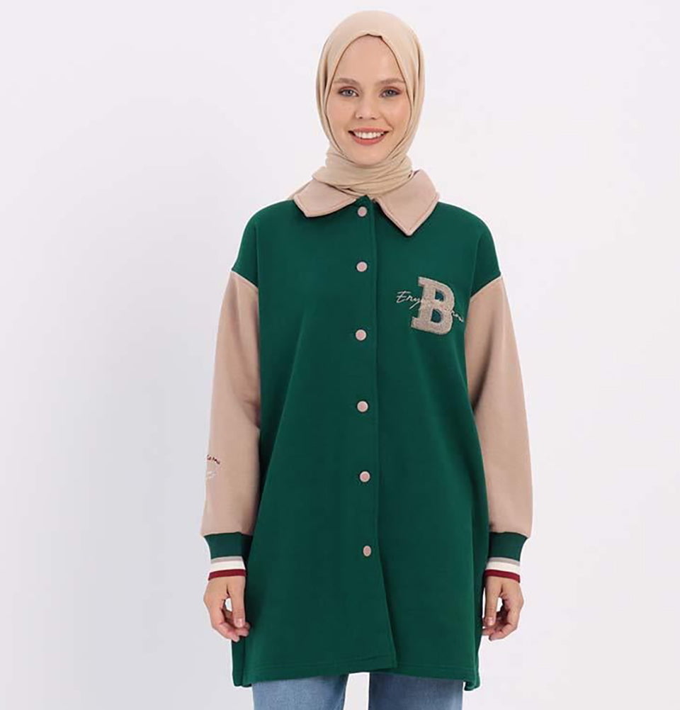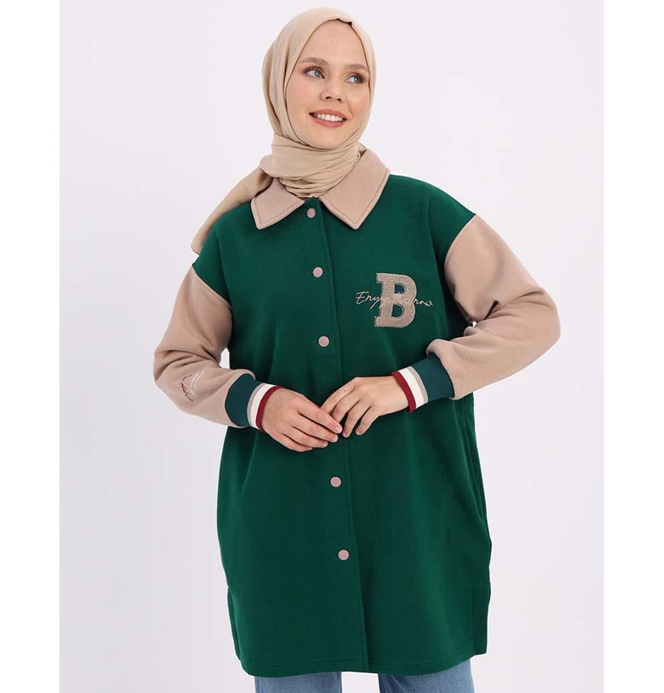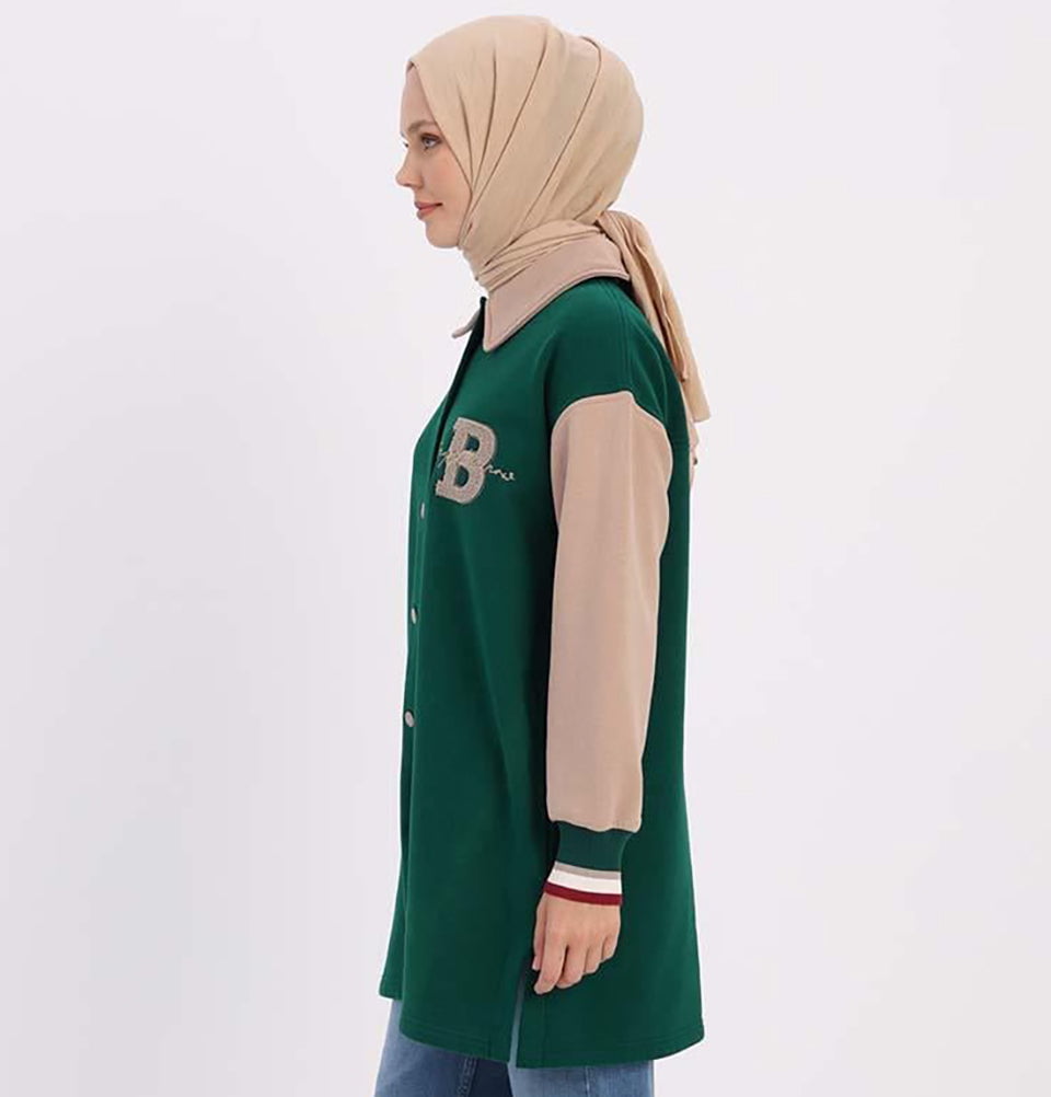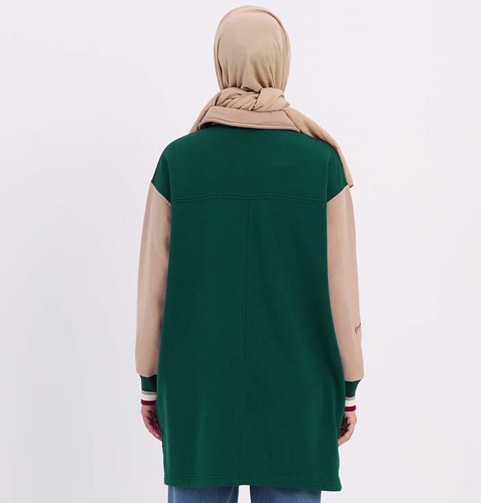 Modest Muslim Women's Two-Tone Letterman Jacket - 93134 Green
