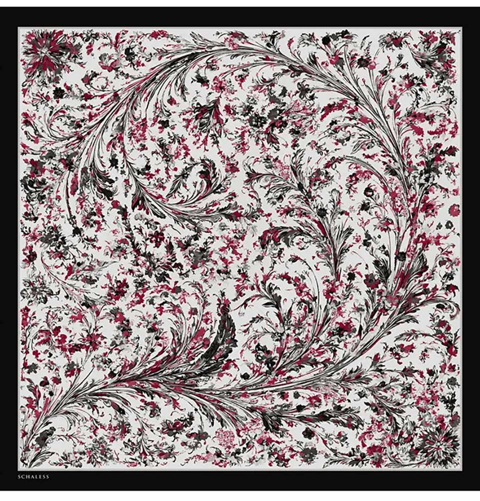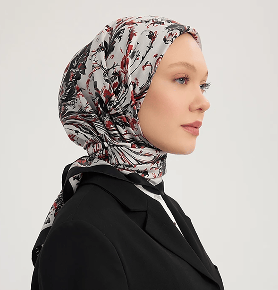 Serica Patterned Silk Square Feather Garden Hijab - Black
