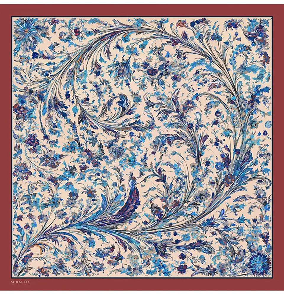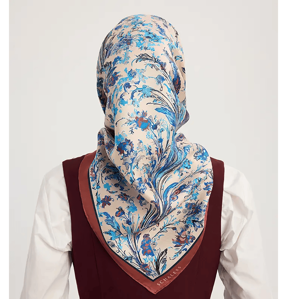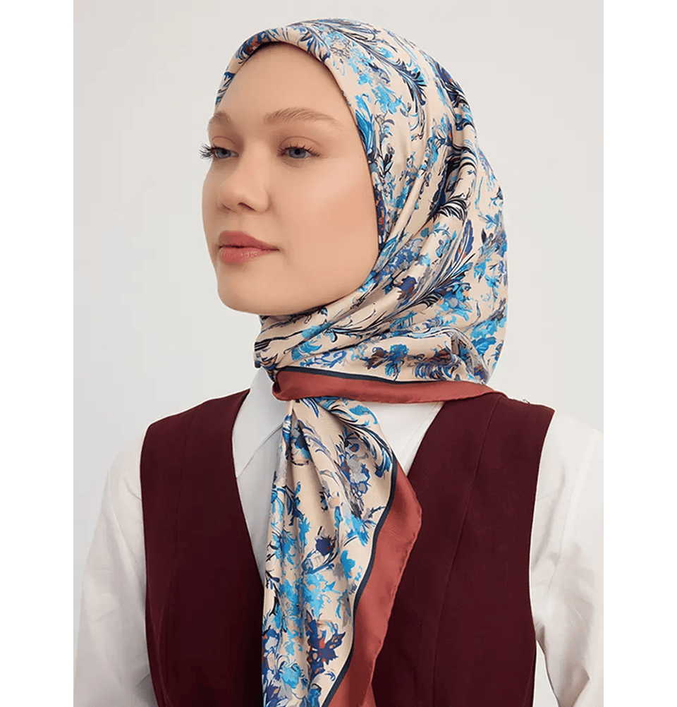 Serica Patterned Silk Square Feather Garden Hijab - Indigo
