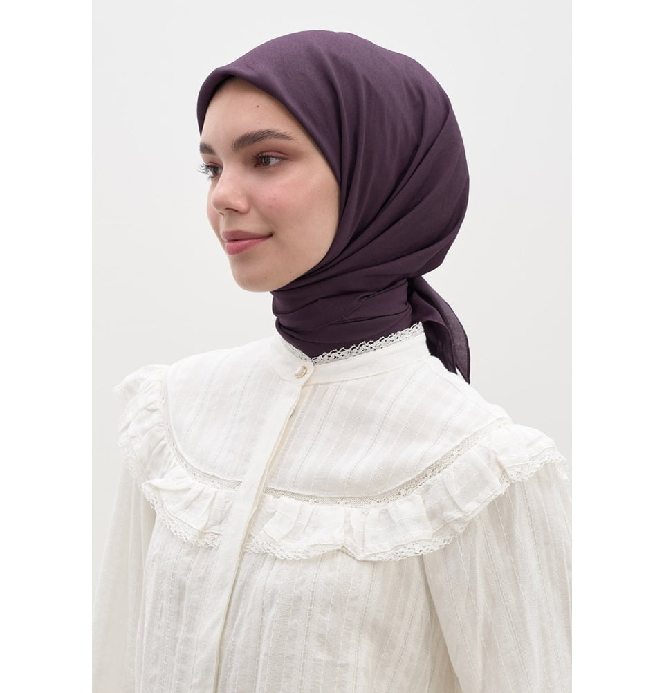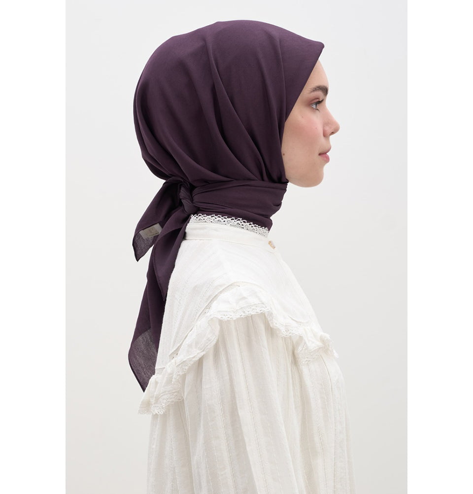 Solid Viscose Cotton Square Hijab - Eggplant Purple