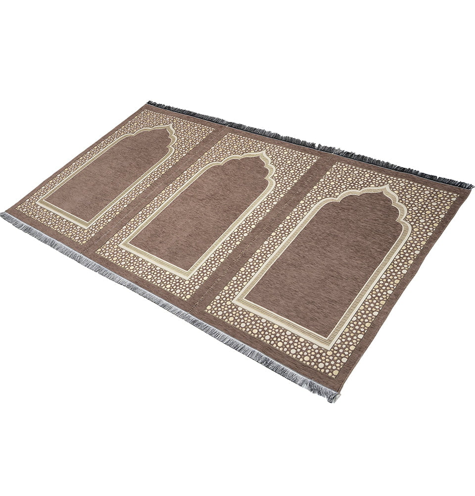 Modefa's lightweight, embroidered chenille prayer mats are now available as a multiperson. They are an affordable, decent quality janamaz great for everyday use and easy to carry for large events!