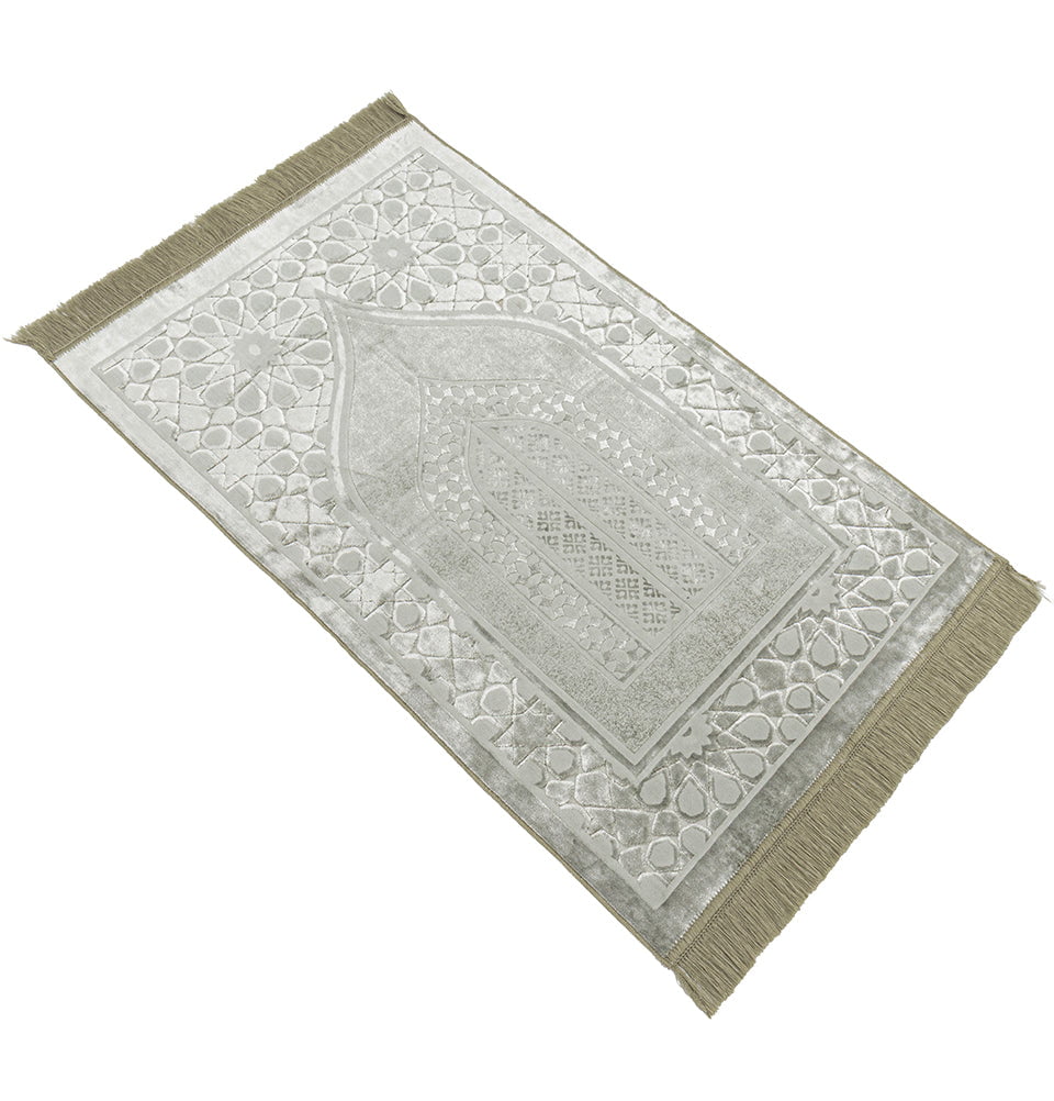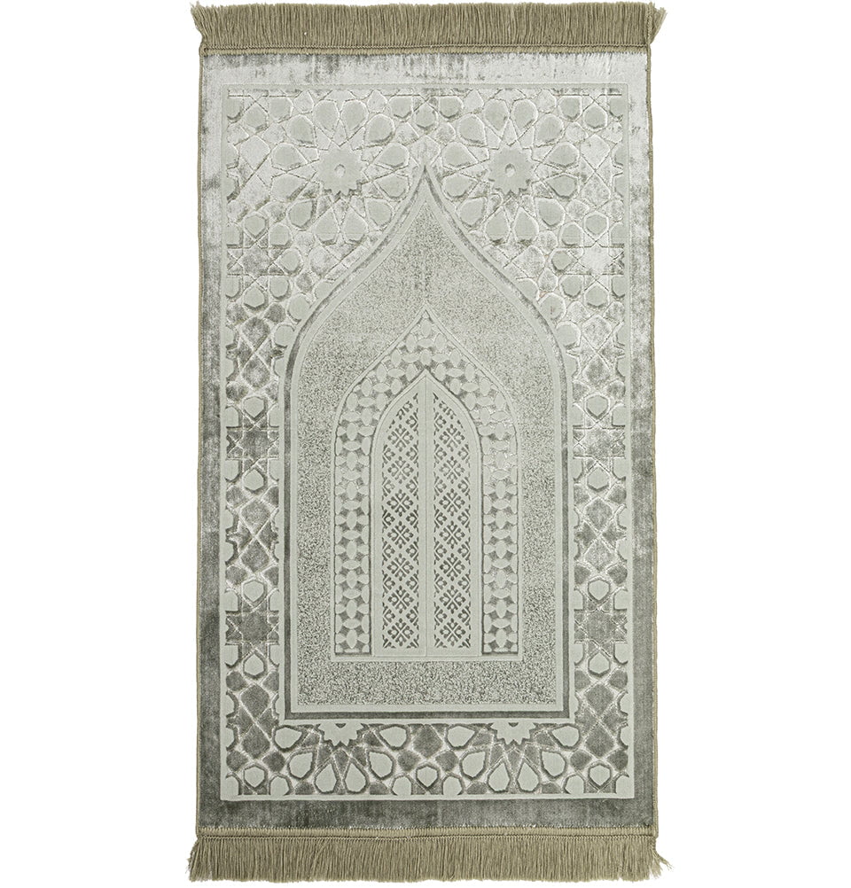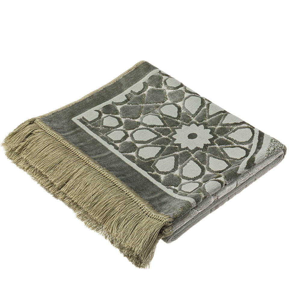Luxury Velvet Islamic Prayer Rug Moroccan Star - Earth Green