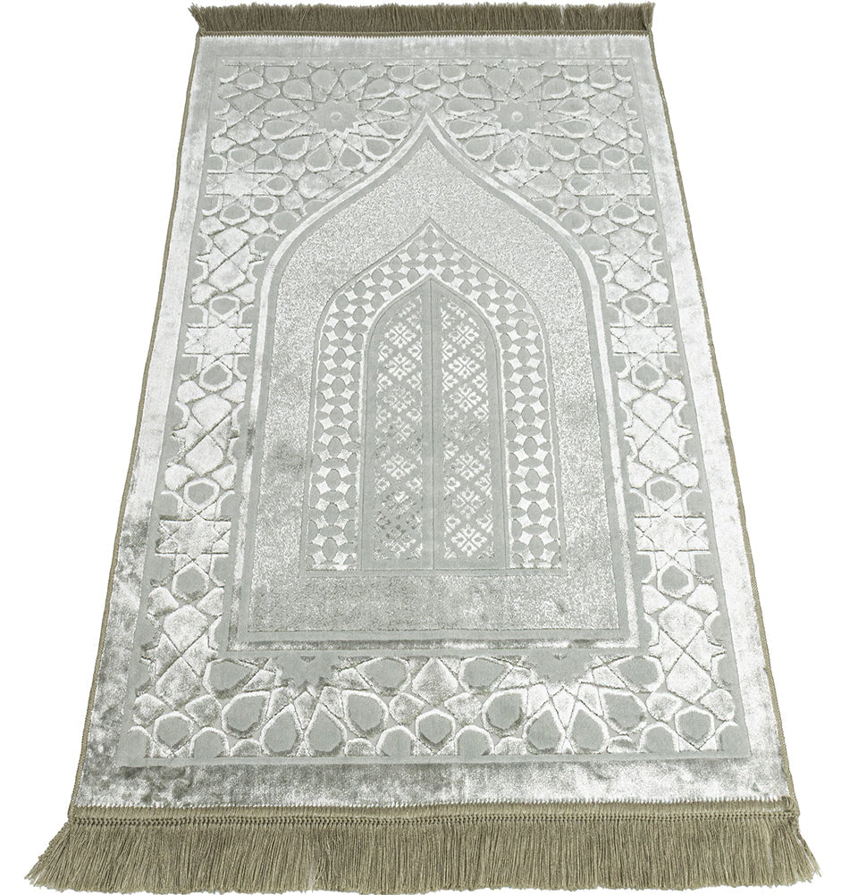 The luxury velvet line is made of dense, high quality velvet. These sajjada are machine made, but hand-finished with the best workmanship Turkey has to offer.