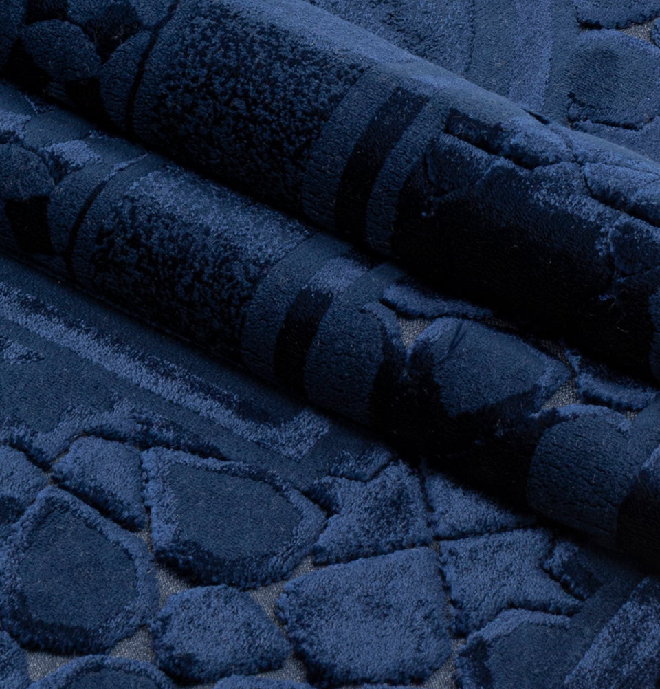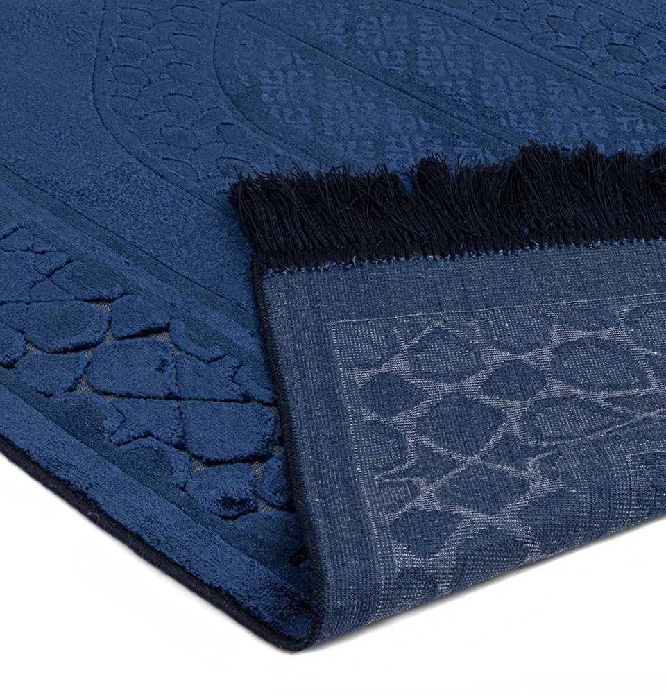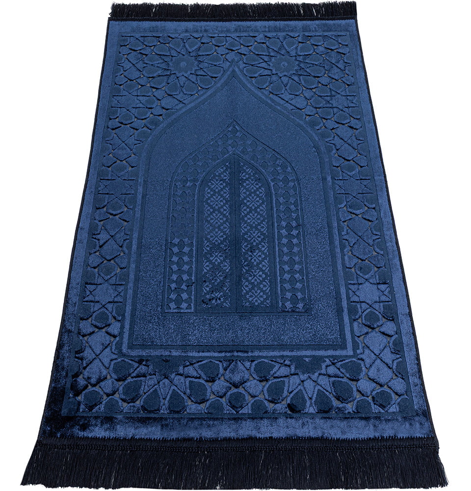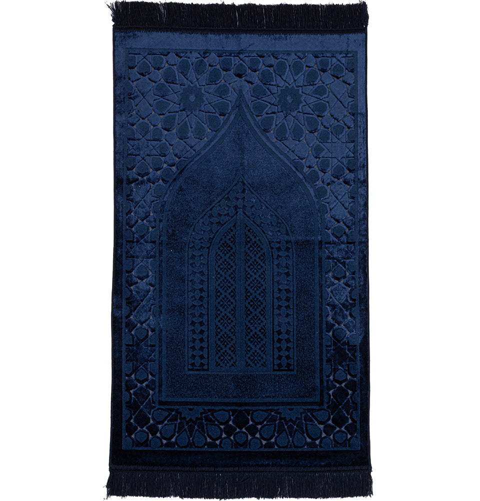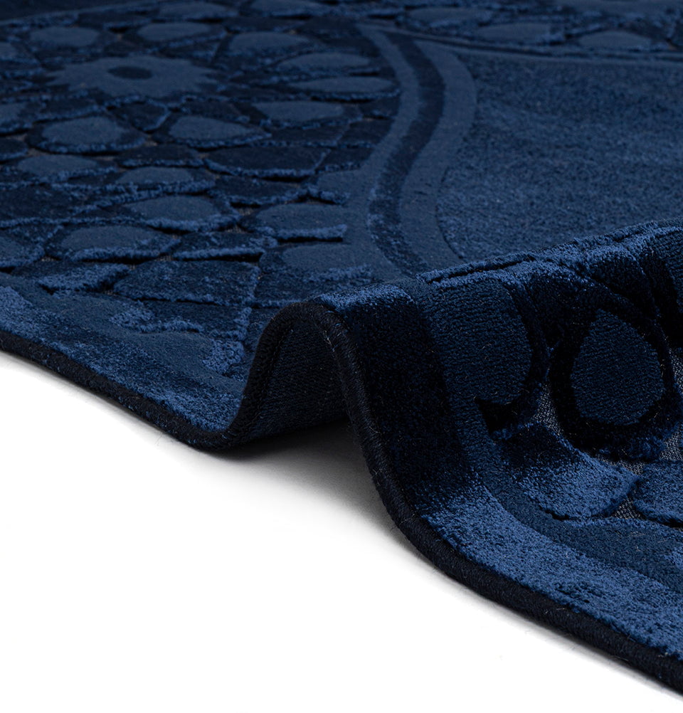 Luxury Velvet Islamic Prayer Rug Moroccan Star - Navy Blue