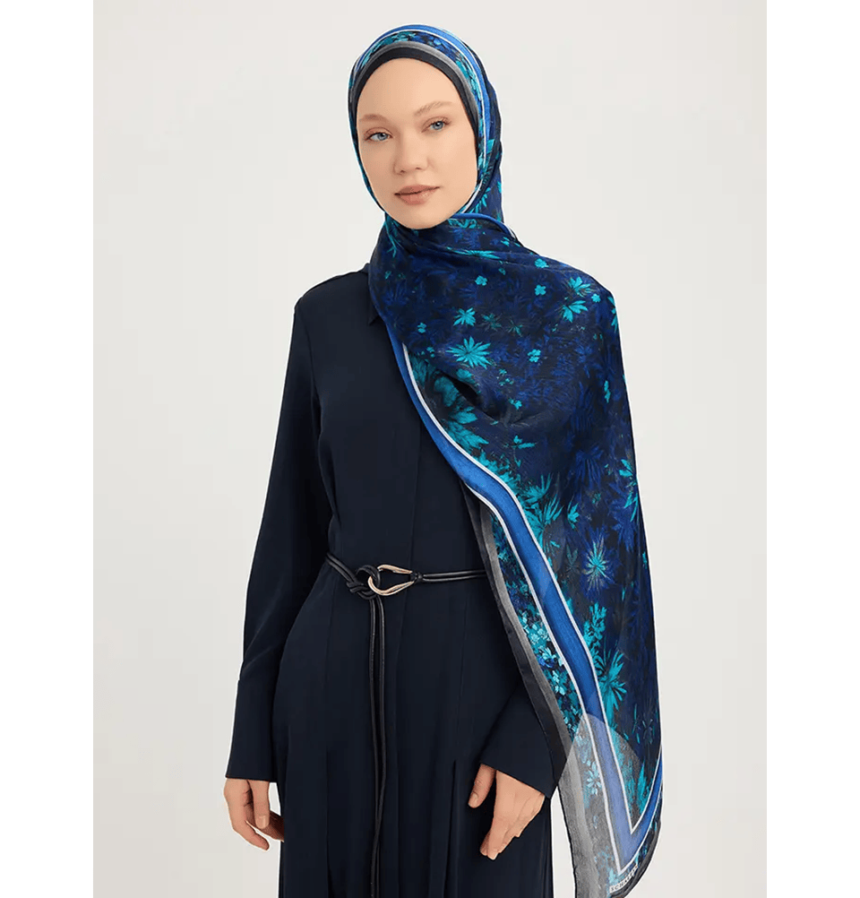 Aurora Satin Shawl Hijab Night Garden - Blue