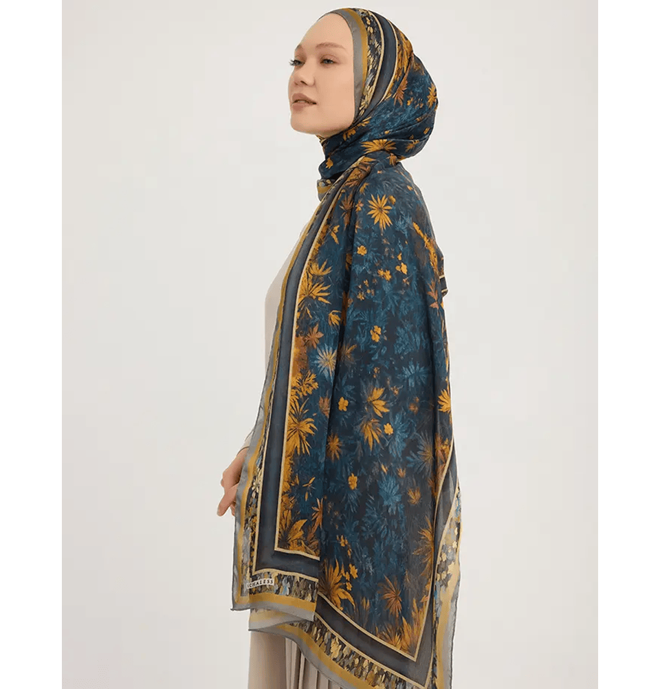 This elegant floral hijab from the Aurora series features a soft grey base complemented by a delicate flower pattern, offering a refined and timeless look. The lightweight fabric with a subtle textured finish adds gentle movement and depth, making it a versatile accessory for both everyday wear and special occasions. Easy to style and comfortable to wear, it pairs effortlessly with coats, dresses, and casual outfits alike, adding a graceful touch to any ensemble.