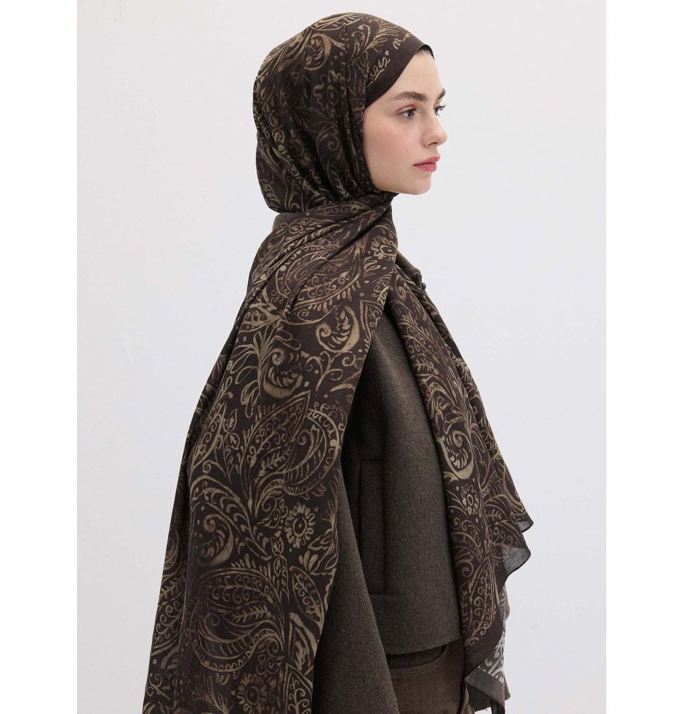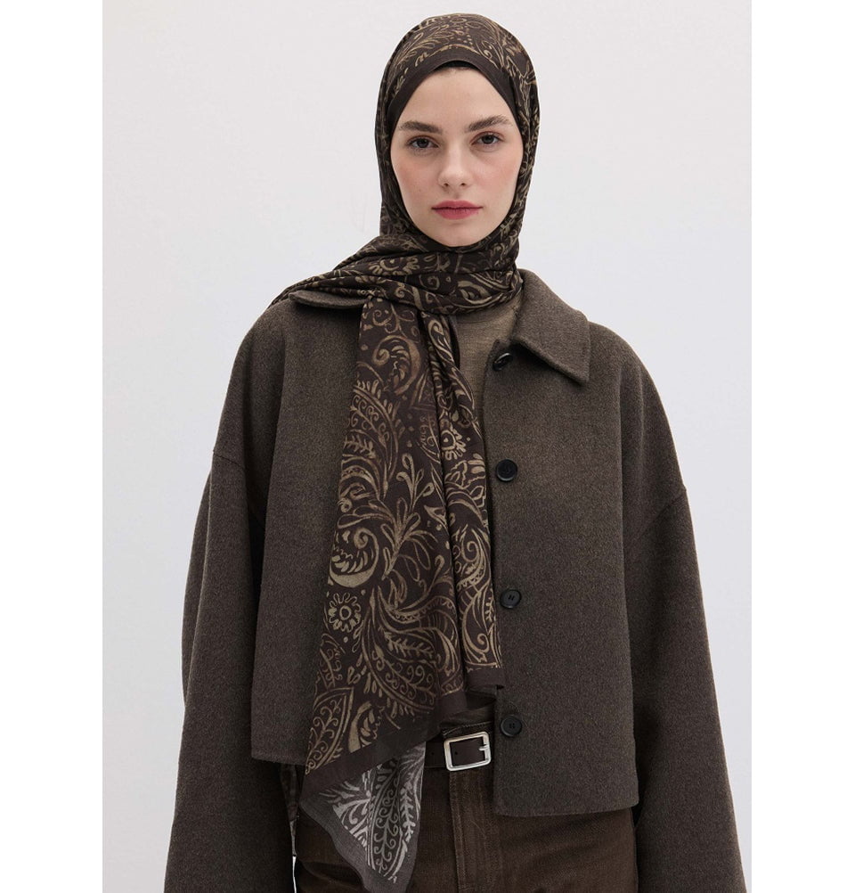 Modal Silk Blend Bohemian Breeze Freesia Shawl Hijab - Cocoa