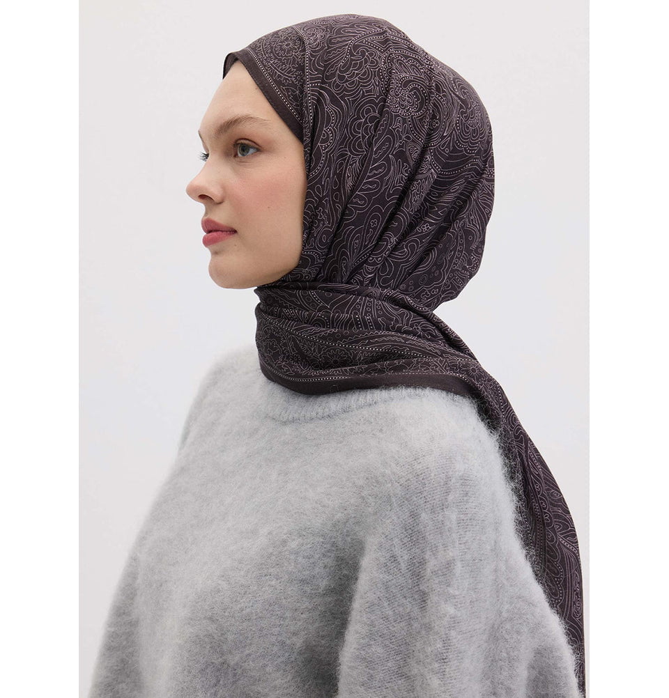 Immerse yourself in cozy, timeless elegance with the Bohemian Breeze Reina Shawl Hijab. This richly toned hijab features paisley motifs across a warm, earthy backdrop, creating a look that feels both artistic and refined. Crafted from a buttery-soft blend of modal, cotton, and silk, it offers a luxurious drape while maintaining its structure for an effortlessly polished appearance. Designed for versatility, it can be styled as a modest hijab, chic neck wrap, or elegant shoulder drape. The slip-resistant texture makes it easy to shape and secure, ensuring all-day comfort. Lightweight and suitable for every season, it's the perfect choice for the modern, modest Muslim woman seeking beauty, comfort, and durability in one.