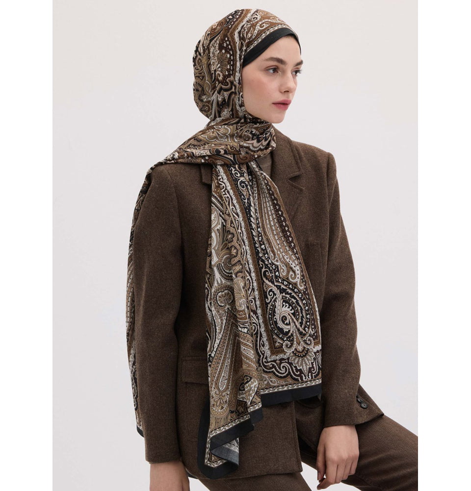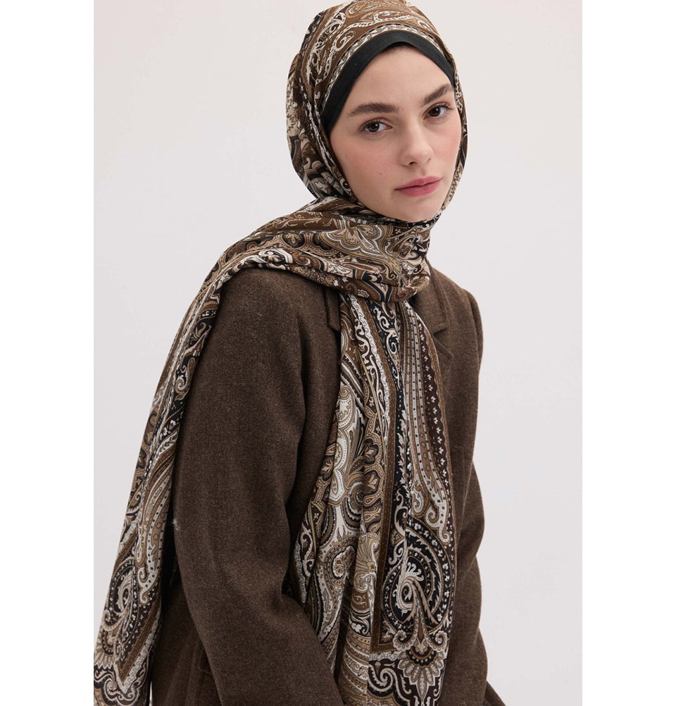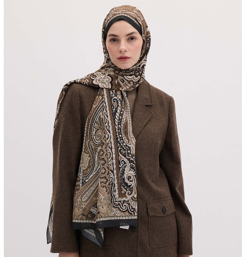 This Ethnic Paisley Patterned Hijab in deep, rich vibrant colors, timeless elegance to your wardrobe. Part of Fresh Scarfs' Bohemian Breeze collection, its design combines intricate paisley motifs with a cultural flair that feels both artistic and refined. The silky cotton with a modal and silk blend ensures a soft, breathable feel, making it perfect for year-round wear. Whether you drape it casually or style it neatly, this hijab offers a versatile, slip-resistant finish that stays in place throughout the day.