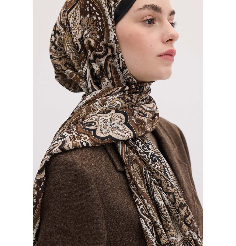 Fresh Scarf Shawl Beige Soil Modal Silk Blend Bohemian Breeze Etnic Floral Shawl Hijab - Beige Soil