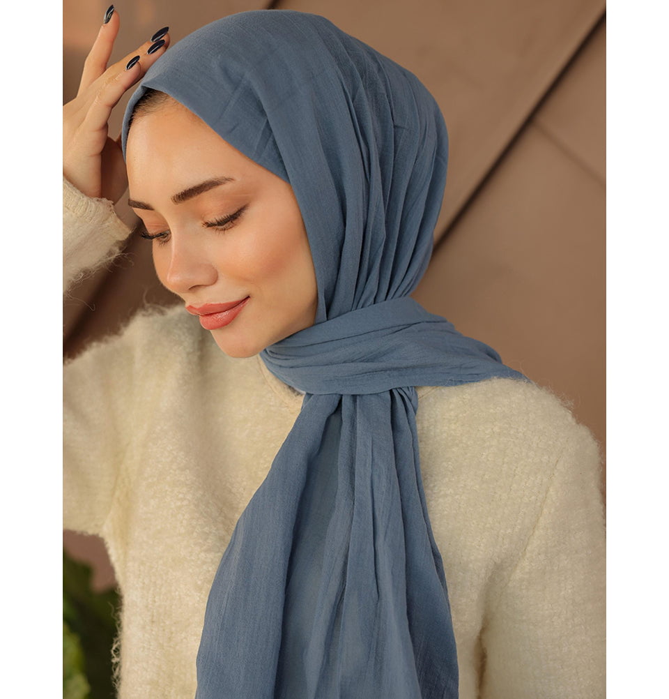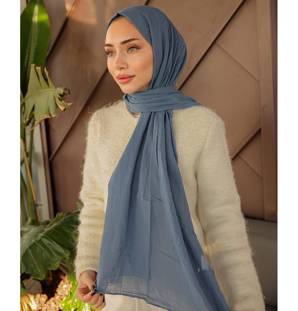 Refresh your style with this effortlessly chic knitted cotton hijab. Made from lightweight breathable cotton, keeping you cool during warmer months, these hijabs are lengthy and soft and drapes easily with minimal slip. The subtle crinkle texture is gentle and comfortable while creating sophisticated looks for everyday wear. Perfect for modest Muslim woman who loves comfort and style. Great for everyday wear.