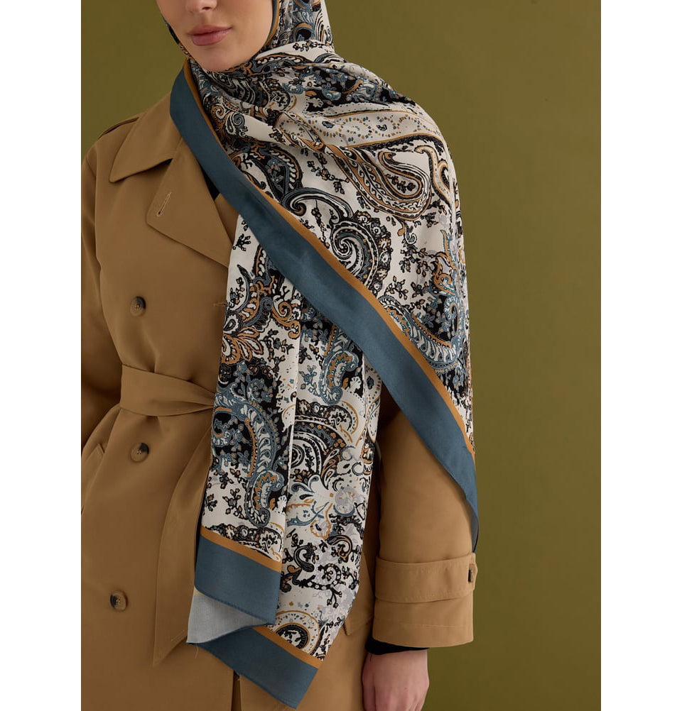 Tap into culture with this pashmina styled elegant ethnic patterned hijab featuring intricate paisley motifs in rich colors that will have you in awe! Crafted from a lightweight, smooth viscose that is soft on the skin and gentle in sheen. This hijab drapes beautifully while providing full coverage. Long length and appealing for culturally chic looks for every day or sophisticated elegant special occasions, this shawl hijab is the perfect choice.