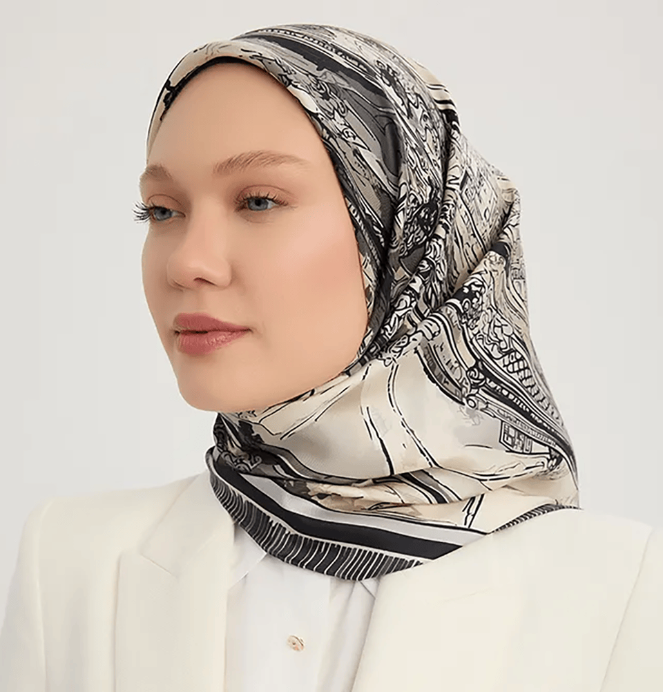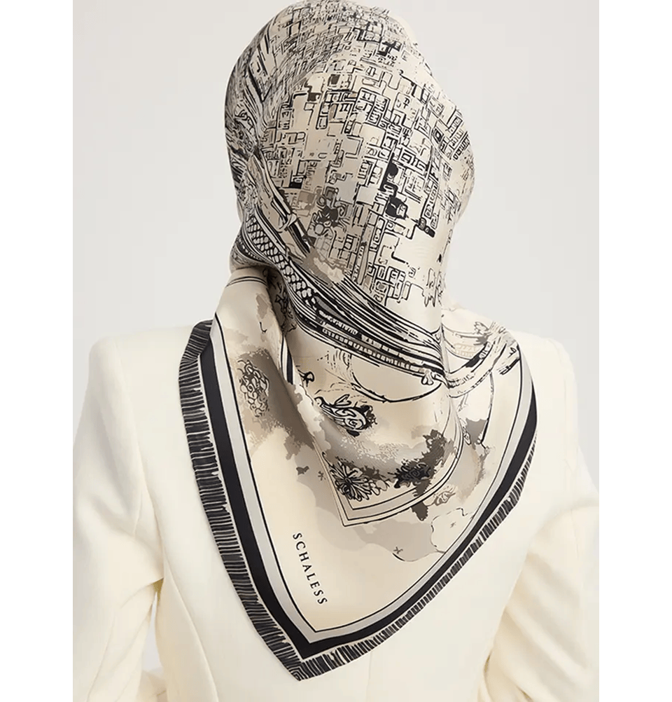Serica Patterned Silk Square Crescent City Hijab - Black